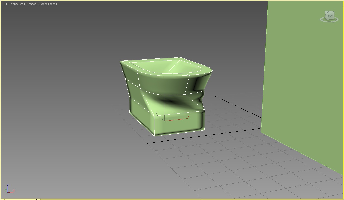 Convertimos a editable poly. Redondearemos los bordes del lavabo, así como su base. Para ello seleccionamos las aristas correspondientes usando loop y aplicamos chamfler. Mete 3 segmentos para hacer un chaflán y conseguir unos bordes más suaves. Ahora seleccionamos las aristas internas del borde del lavabo y con software selection las subimos un poco. Si te das cuenta en la imagen de referencia, el borde del lavabo está ligeramente inclinado hacia arriba. Además, escalaremos el lavabo para reducir el ancho y hacer que parezca algo más redondeado: