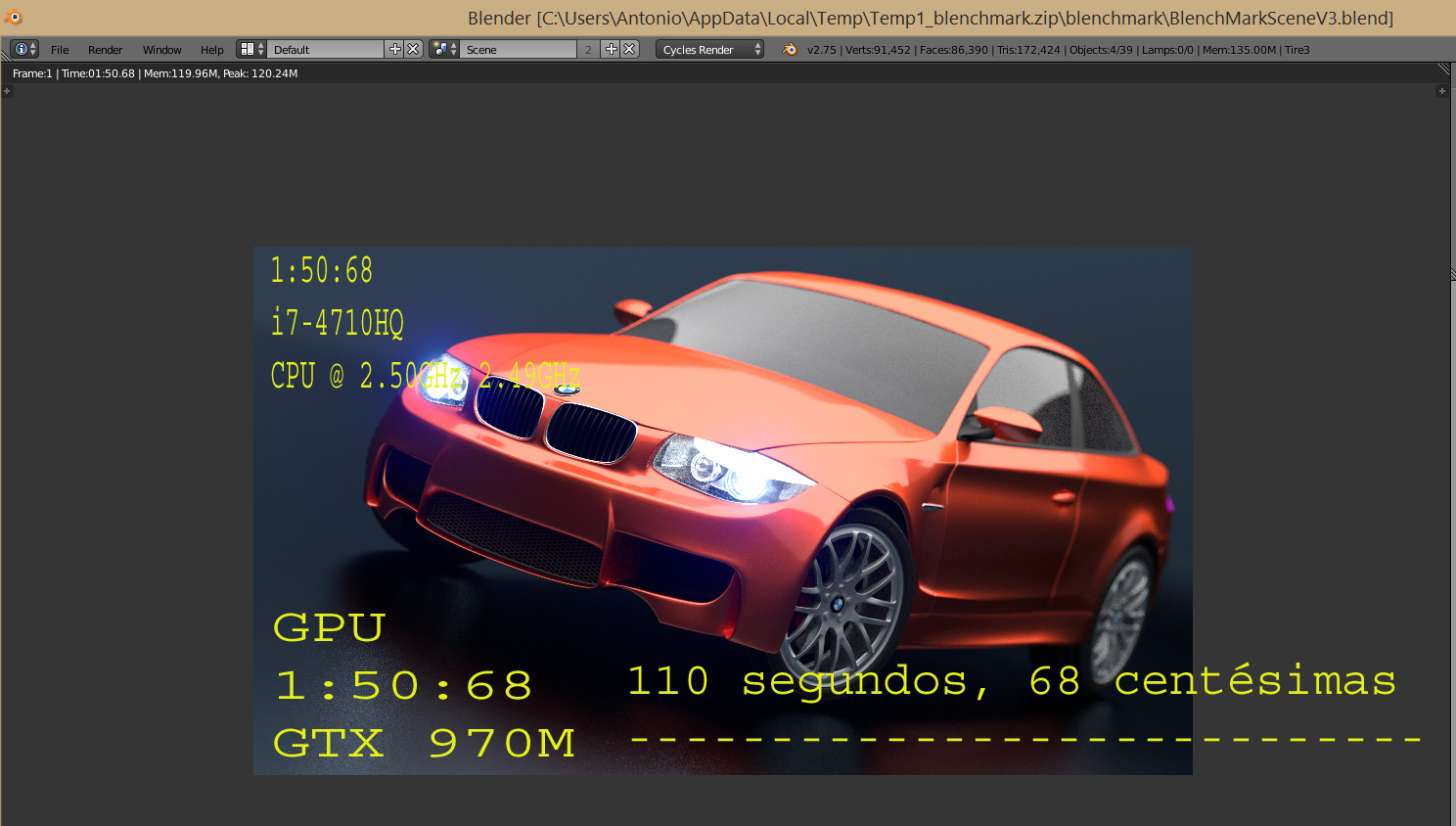 Quiero hacer una prueba de velocidad de render con la tarjeta Nvidia GEFORCE GTX 970m de mi portátil.