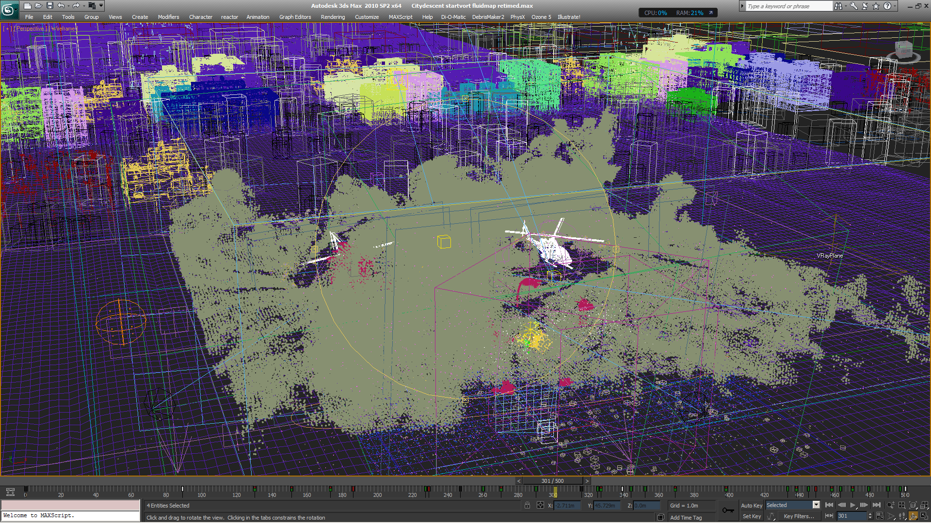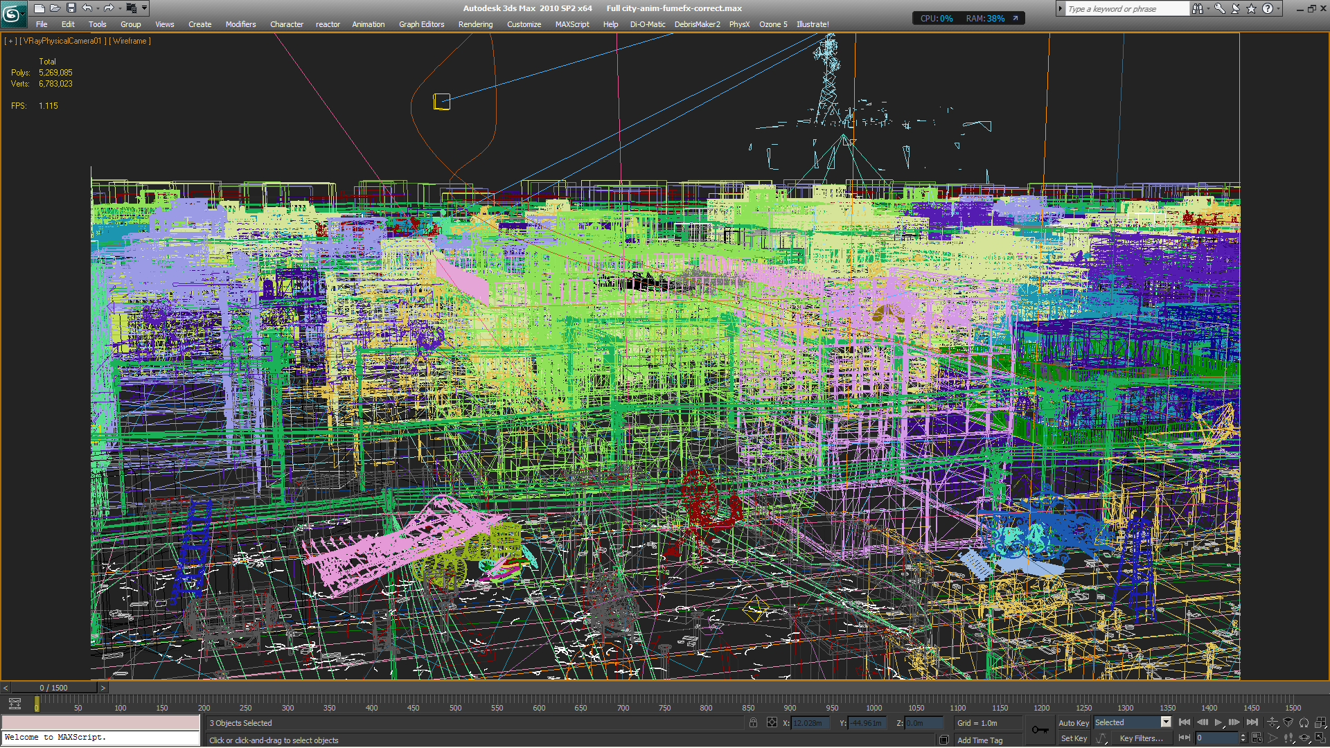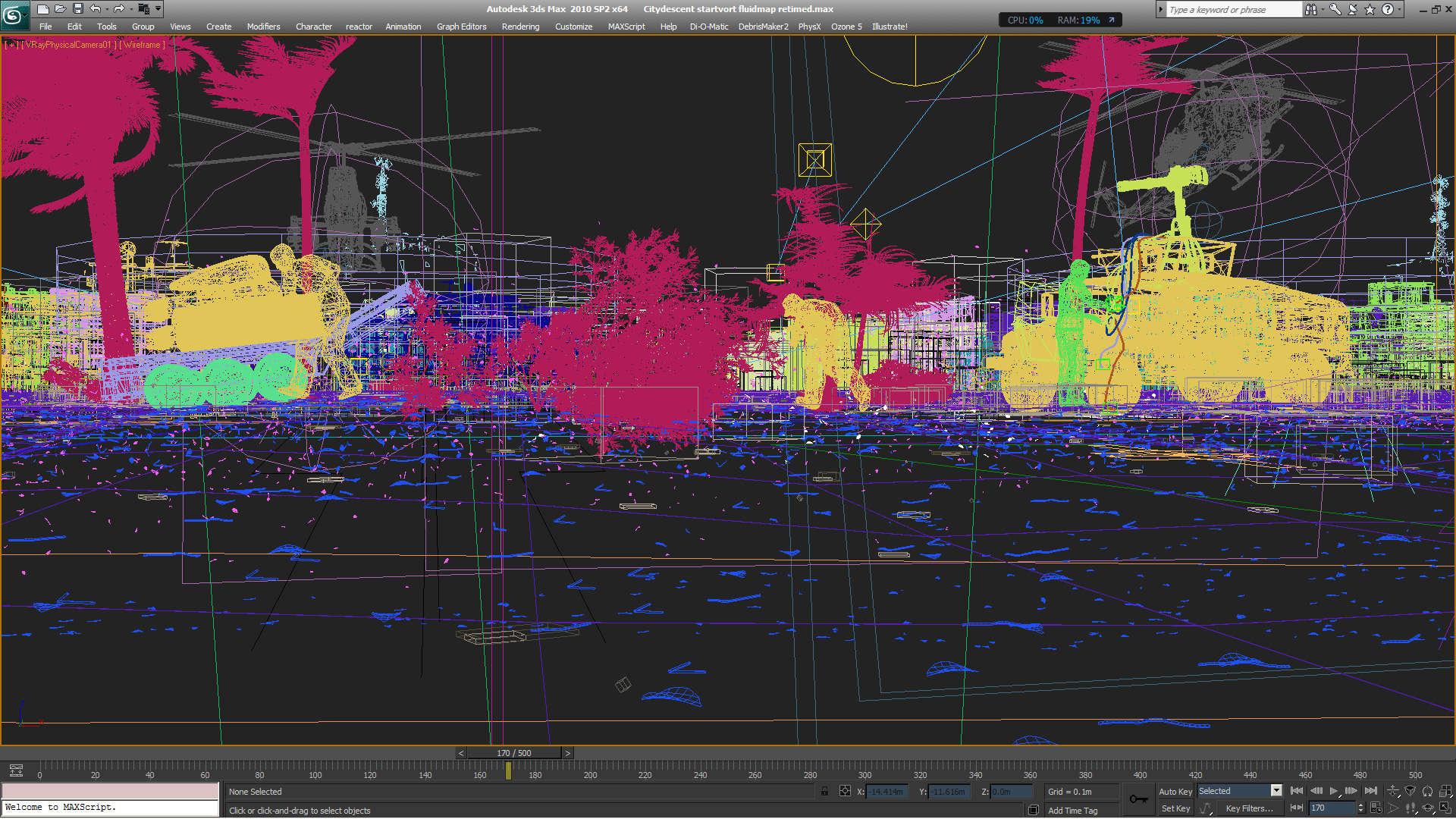 De lo que ves en las escenas sólo un 1% quizás es malla editable. Hasta los vehículos, los personajes, las piedritas, todo es proxy.