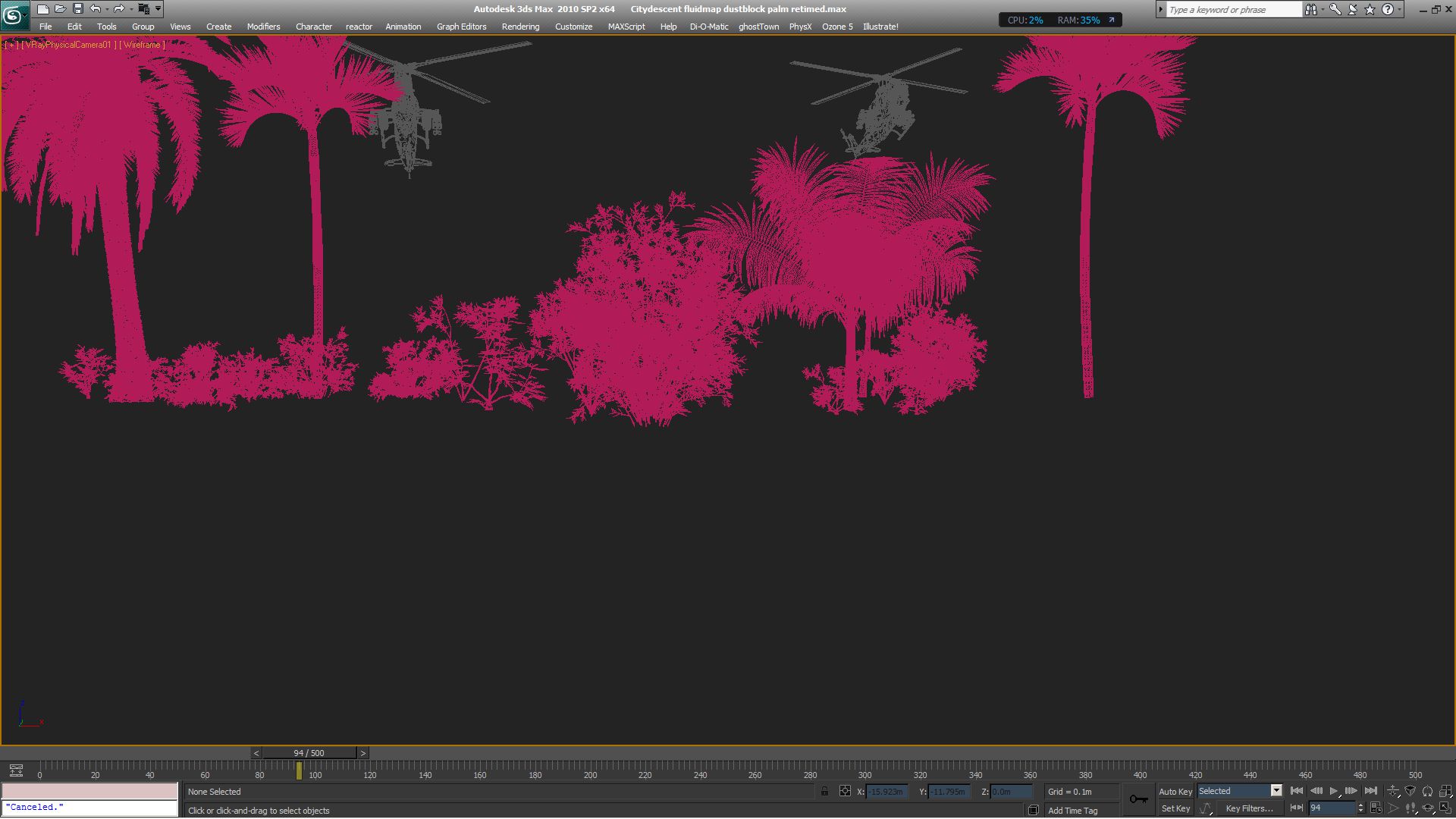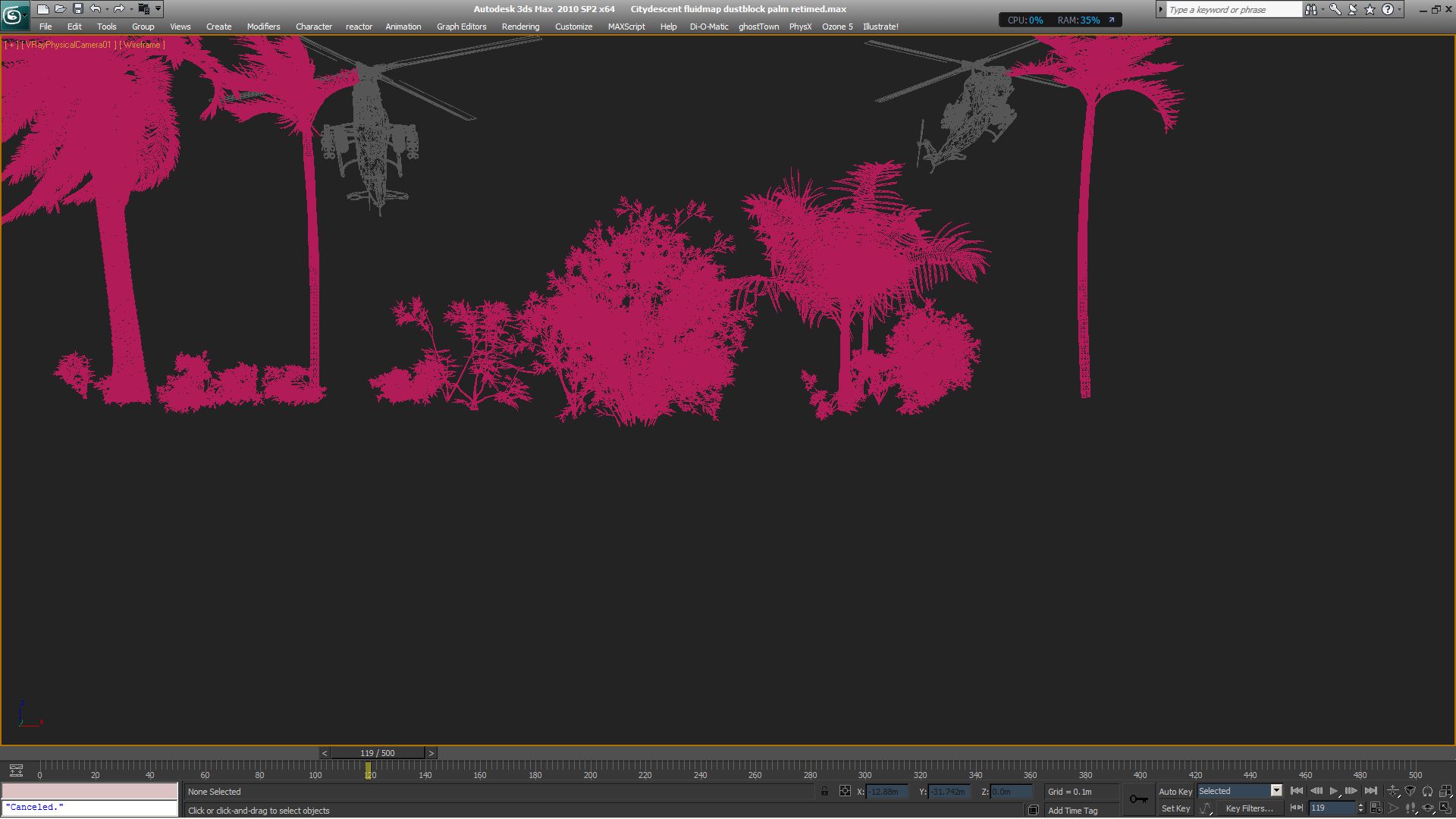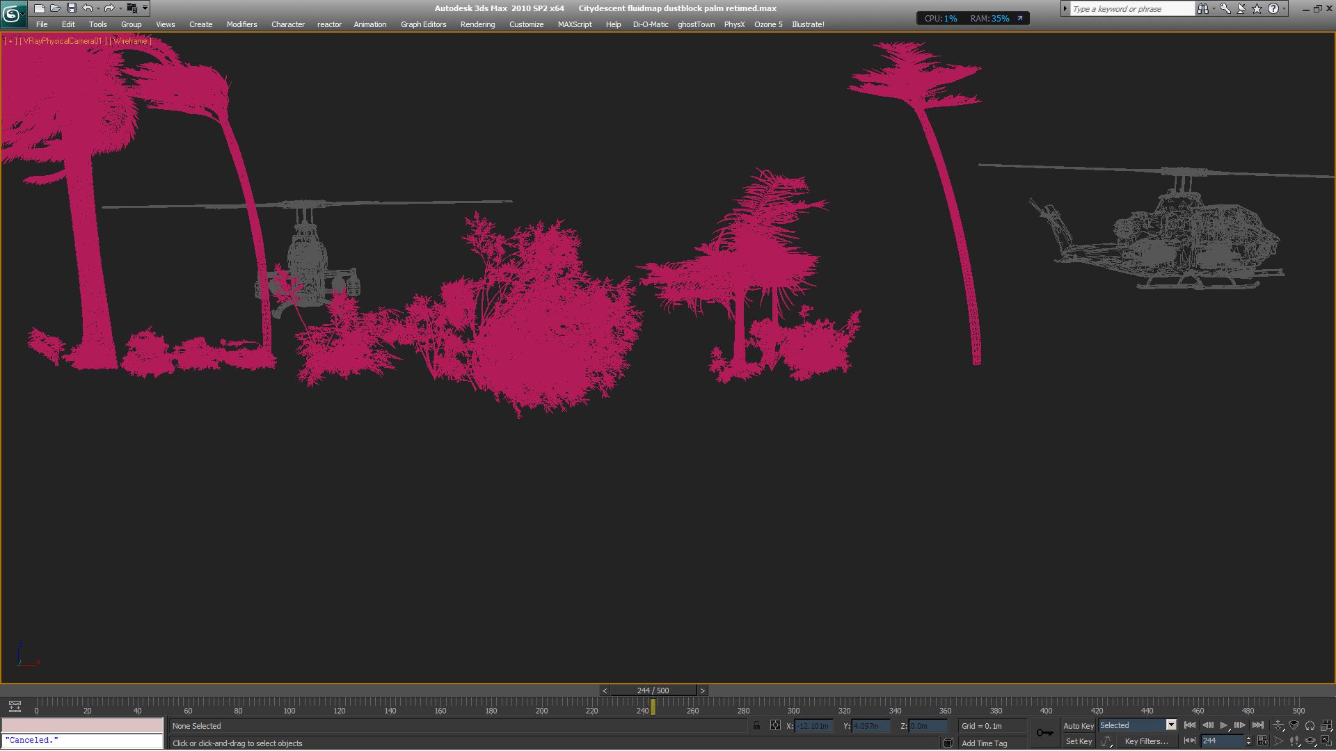 De lo que ves en las escenas sólo un 1% quizás es malla editable. Hasta los vehículos, los personajes, las piedritas, todo es proxy.
