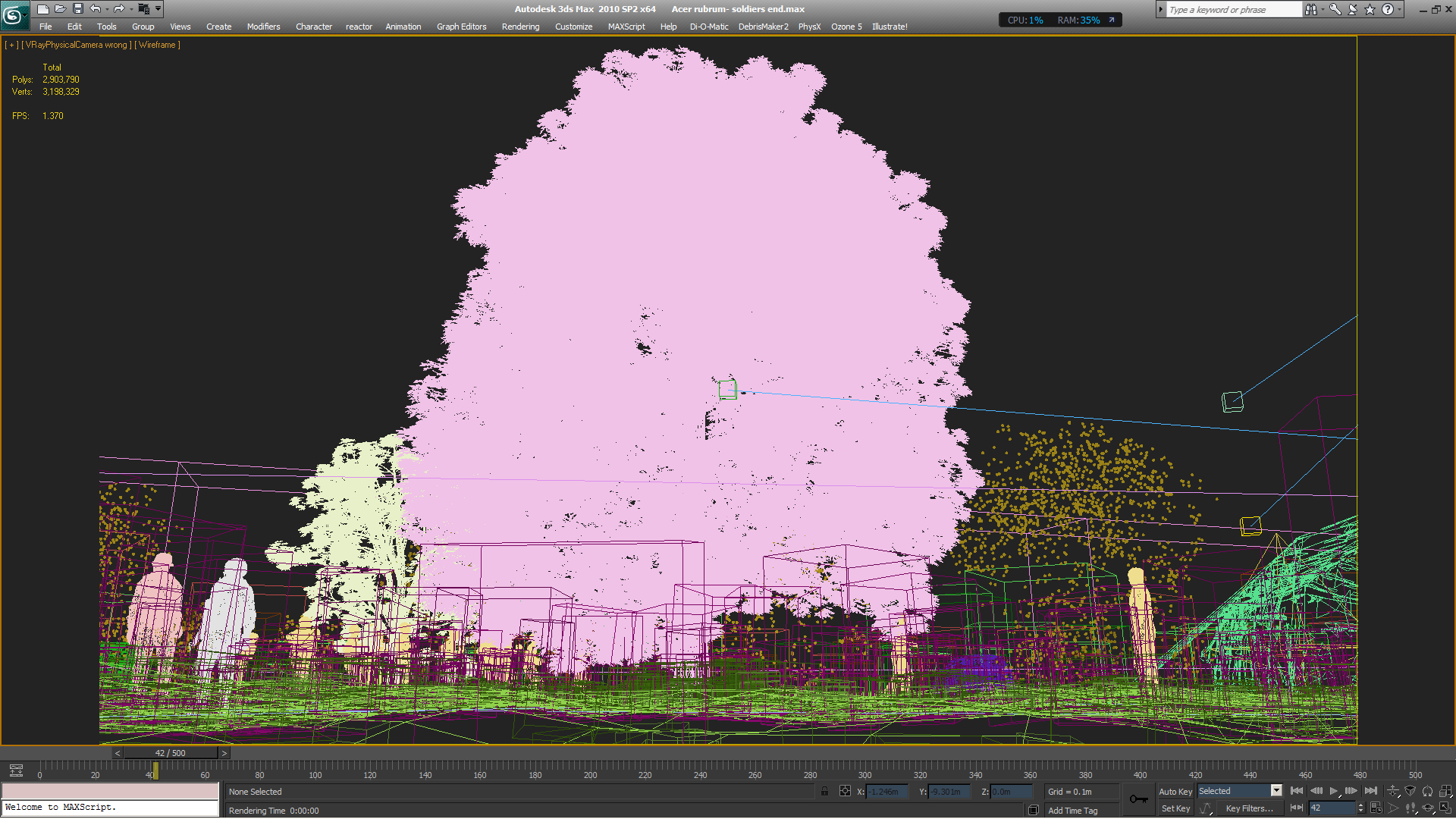 Hoy, aunque tengo instalados max 2013, 2014 y 2015 por compatibilidad, sigo trabajando con max 2010 y guardo todo compatible en max 2010, y si recibo escenas en max 2014 o 2015 voy saltando de max 2015 o 2014 al 2013 y de allí al 2010 porque ese es el que más plugins compatibiliza, especialmente Onyx tree estorm que uso como caballito de batalla, con el que he creado, por ejemplo, la vegetación animada de Militia.