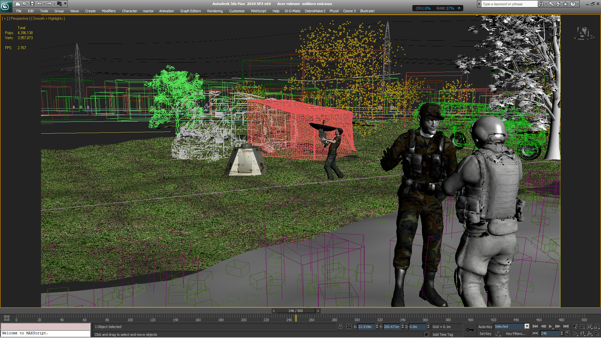 Hoy, aunque tengo instalados max 2013, 2014 y 2015 por compatibilidad, sigo trabajando con max 2010 y guardo todo compatible en 3dsmax 2010, y si recibo escenas en 3dsmax 2014 o 2015 voy saltando de max 2015 o 2014 al 2013 y de allí al 2010 porque ese es el que más plugins compatibiliza, especialmente Onyx Tree estorm que uso como caballito de batalla, con el que he creado, por ejemplo, la vegetación animada de militia.