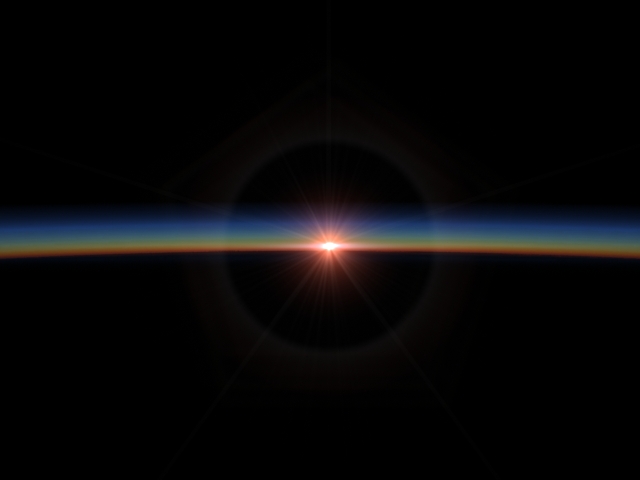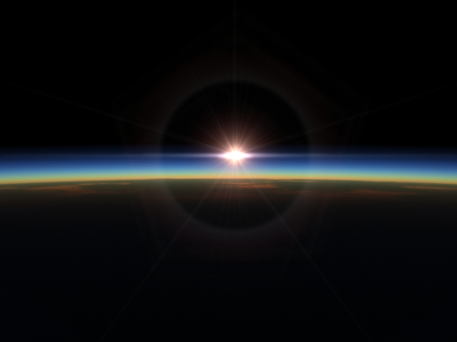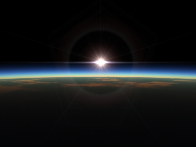 Esta escena es similar, pero contiene dos layers de nubes operando, una capa de stratus a 2km de altura y una capa de cirrus a 8km de altura. Y el sol esta a la izquierda fuera de cámara.
