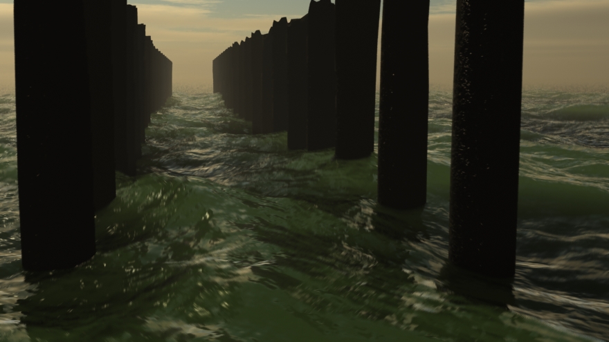 Aquí te paso una imagen de ocean, con su material propio que postura un maravilloso Subsurface Scattering, y su S es un efecto que no adiciona tiempo de render, es increíble.