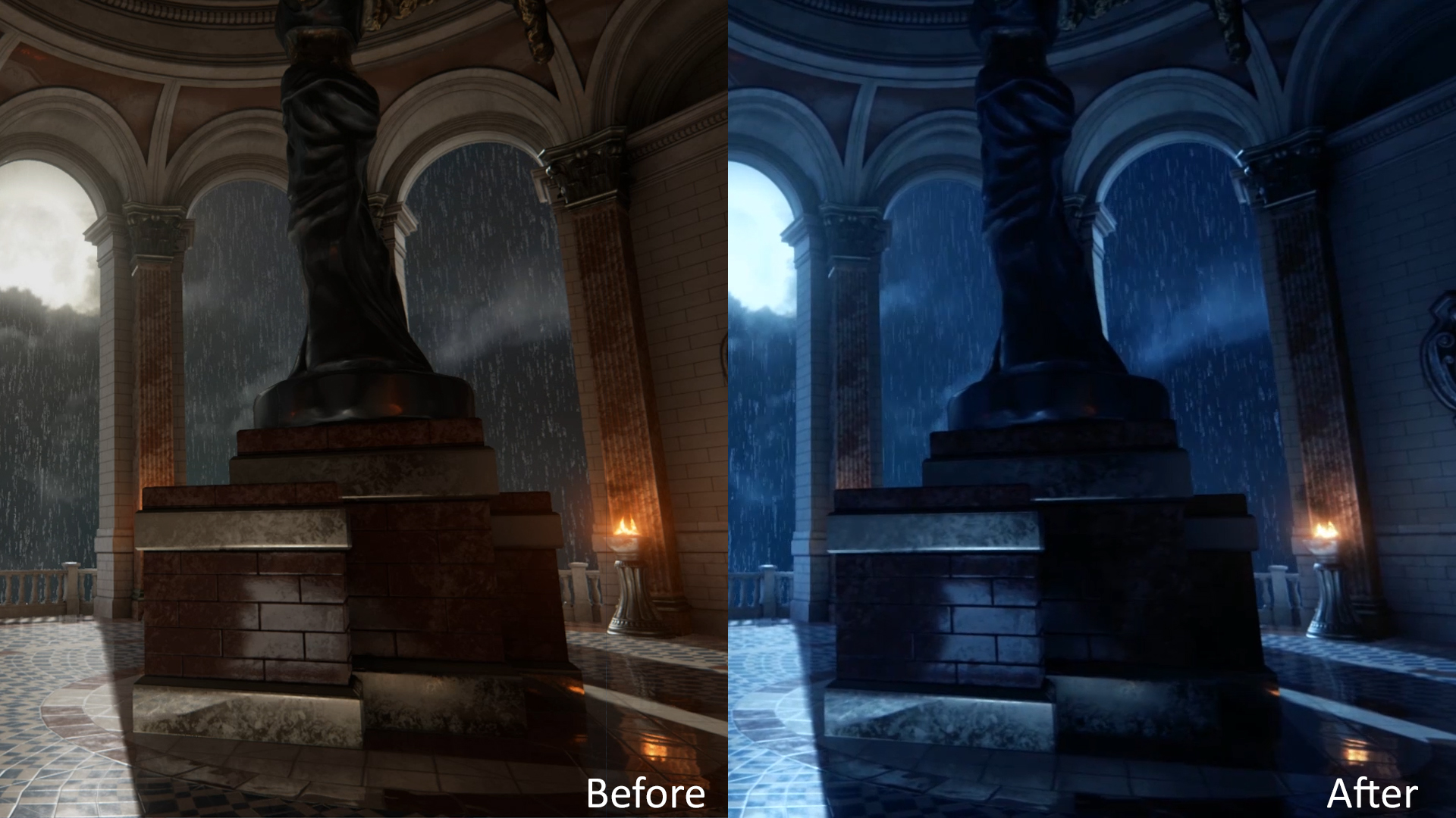 En este ejercicio quería practicar Post-procesado, concretamente aprender a manejar correctamente la herramienta Color Grading. El objetivo era conseguir una visual similar a esta imagen, la cual pertenece a una escena de la primera película de El Hobbit en Rivendel: