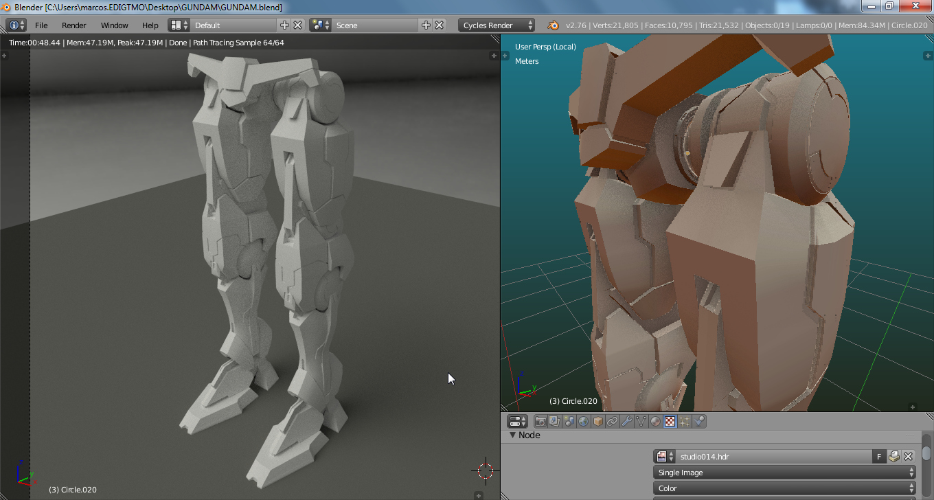 Blender 2.76, aquí algunas imágenes del progreso, espero que les guste. Saludos.