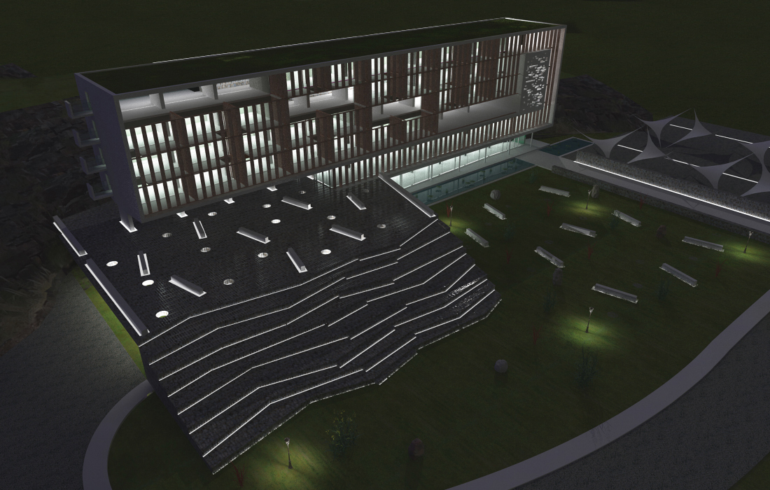 El modelado me llevó unos 2 días. Y el tiempo de render 45 min cada uno. De noche alrededor de 20 o 25 min. Obvio que sin displacement de todo lo que es la roca de la escalinata y otras cosas que tuve que sacar para agilizar, ya que si bien era importante presentarlo mejor posible también tenía que hacer una lámina de 4preguntay no podía pasarme la vida. Estoy conforme con el resultado, aunque sé que siempre se puede mejorar. Muchas gracias por tus opiniones, siempre vienen bien y ayudan. Abrazos.