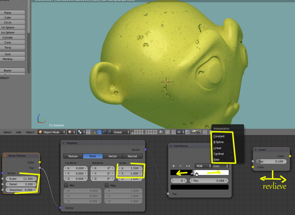 Pues bien, para seguir practicando con el infinito mundo de Blender, me he dedicado a hacer texturas; en este caso de frutas. He intentado, además de conseguir los colores, añadirle las típicas motitas que aparecen en peras o manzanas. El caso es que por mucho que intento, no consigo que aparezcan unas pocas, sino por todos los lados y no es lo que busco. Os mando un pantallazo de los nodos, para ver si me podéis indicar cómo debería de hacerlo para que aparezcan las motitas que hay en las imágenes. Muchas gracias.