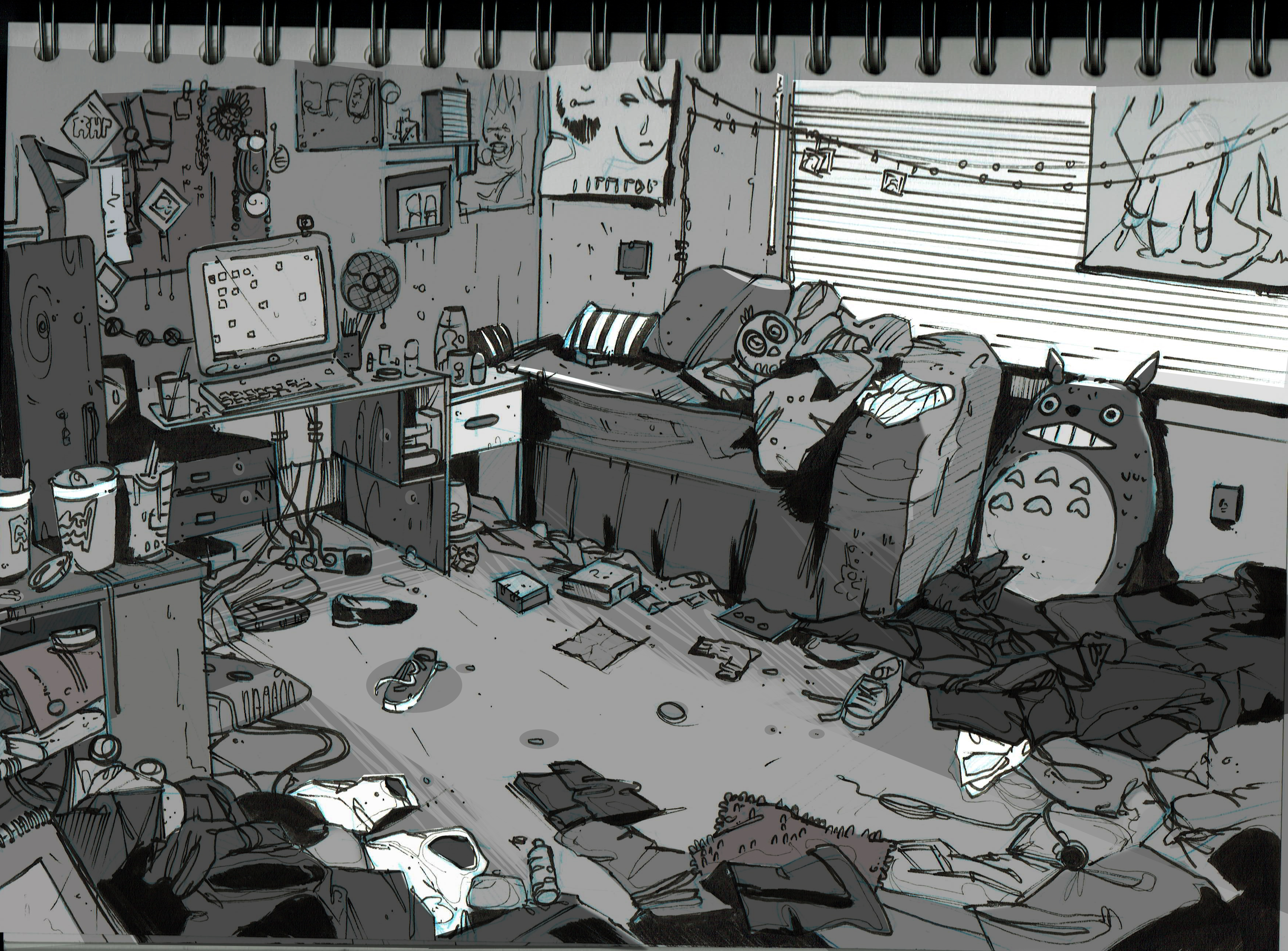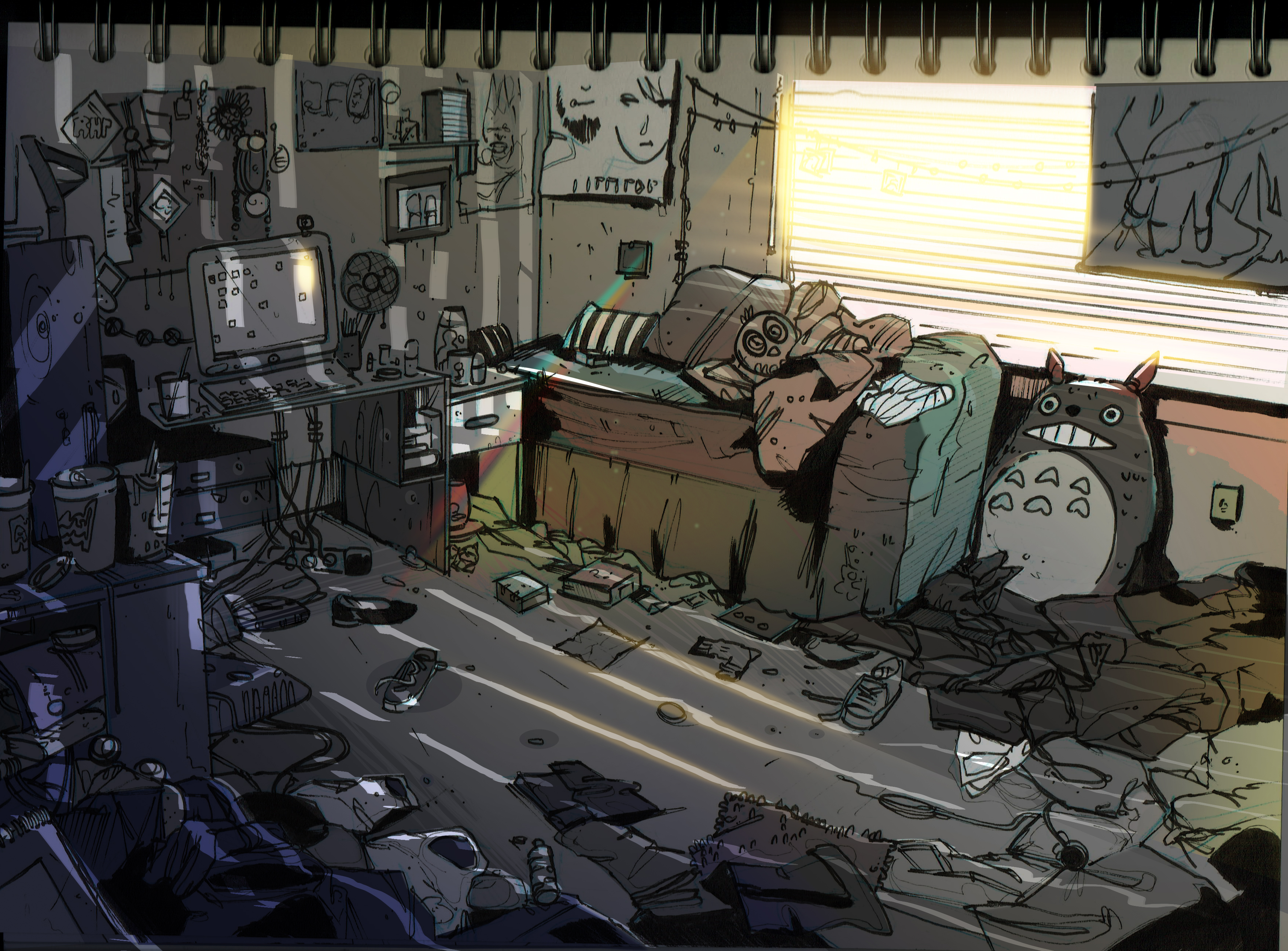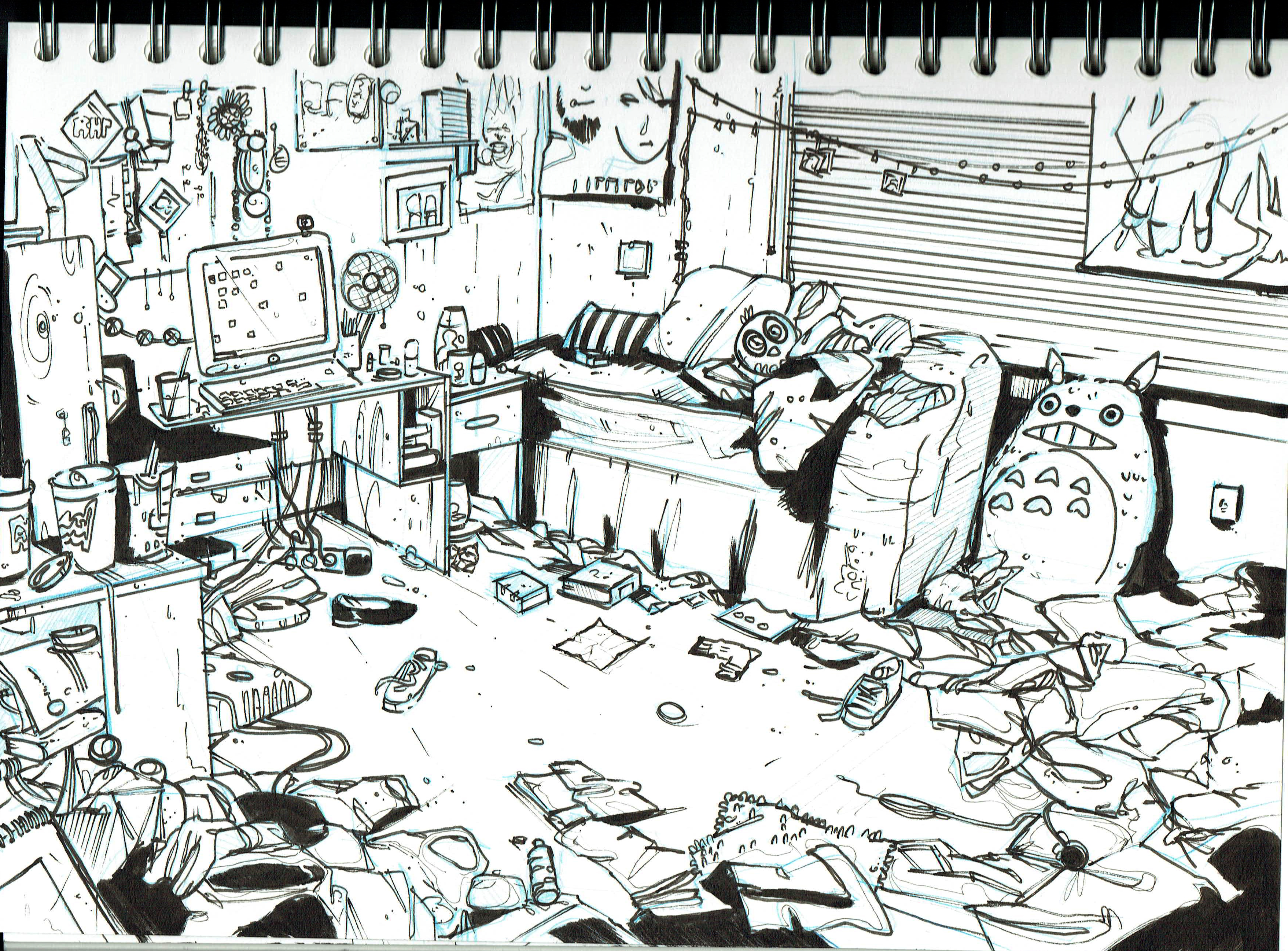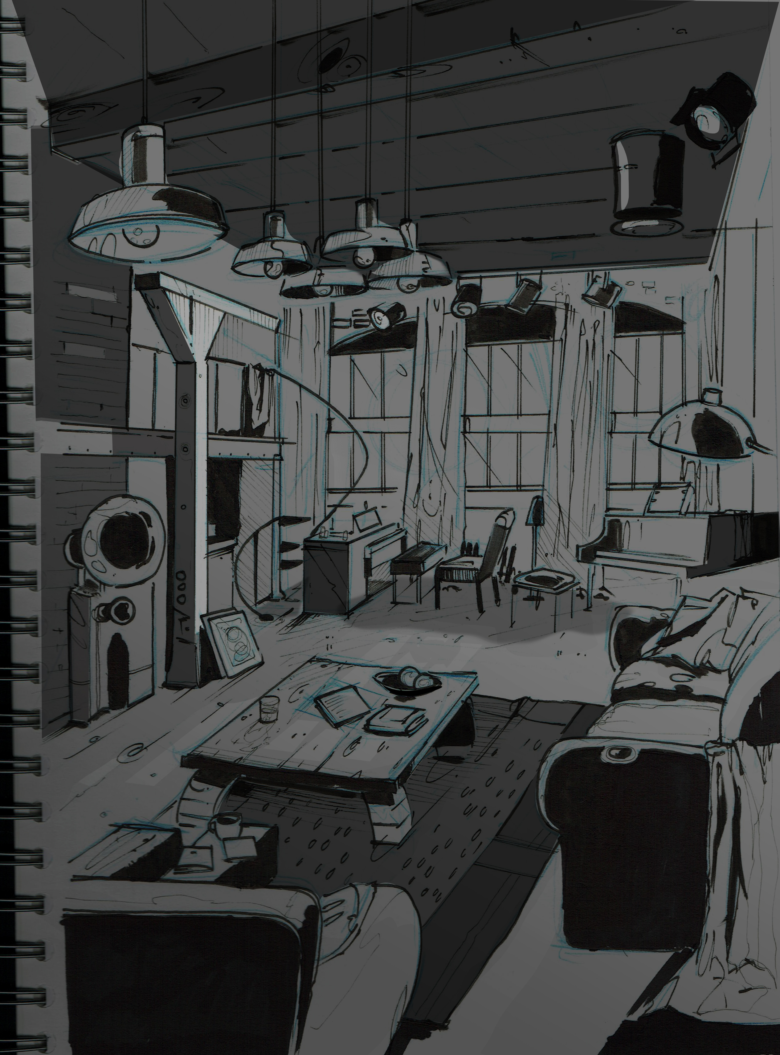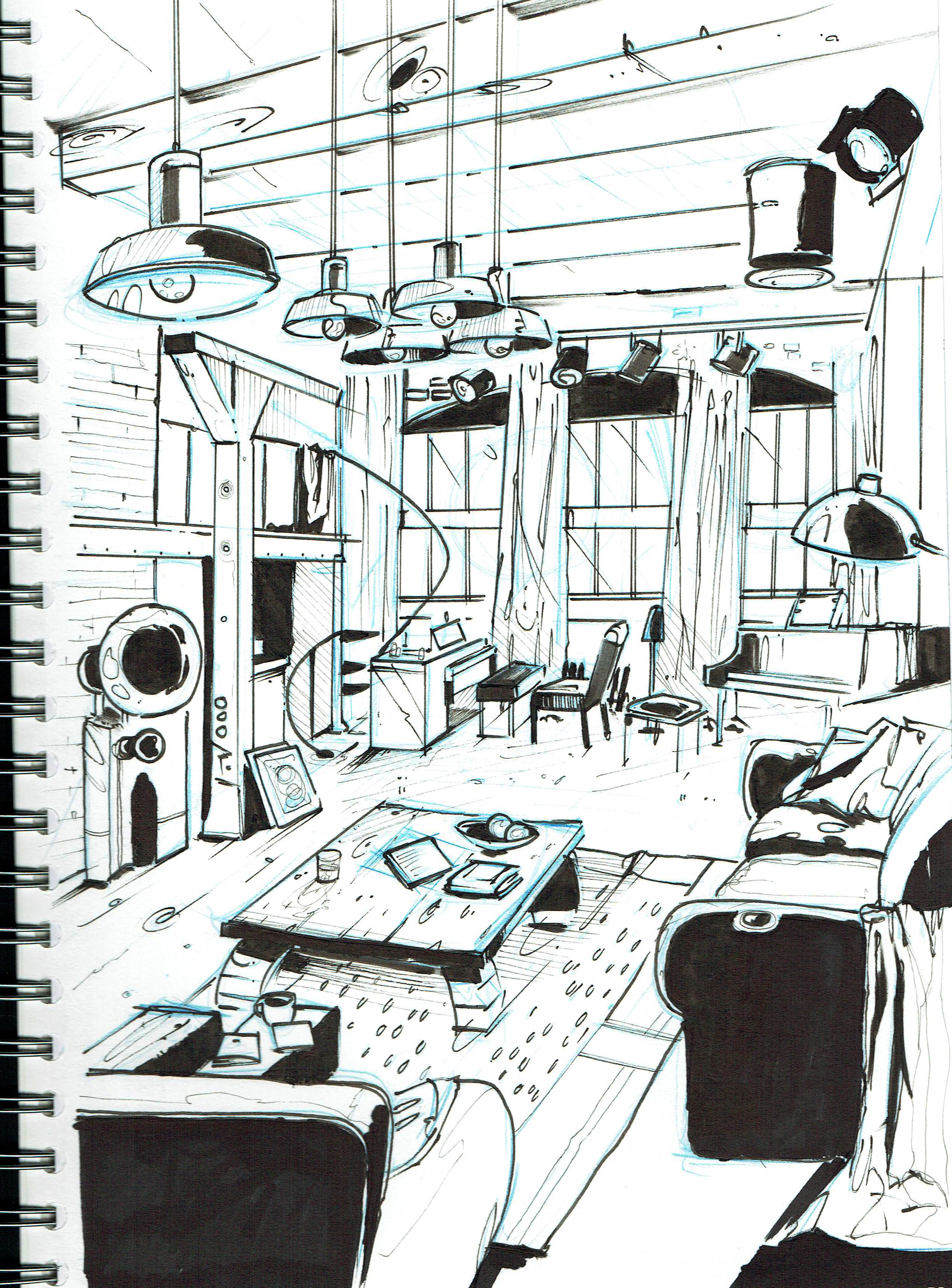 Esta semana el boceto diario se lo voy a dedicar a interiores, empezando hoy con la habitación.