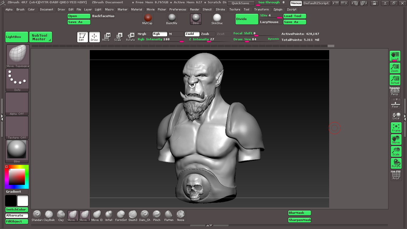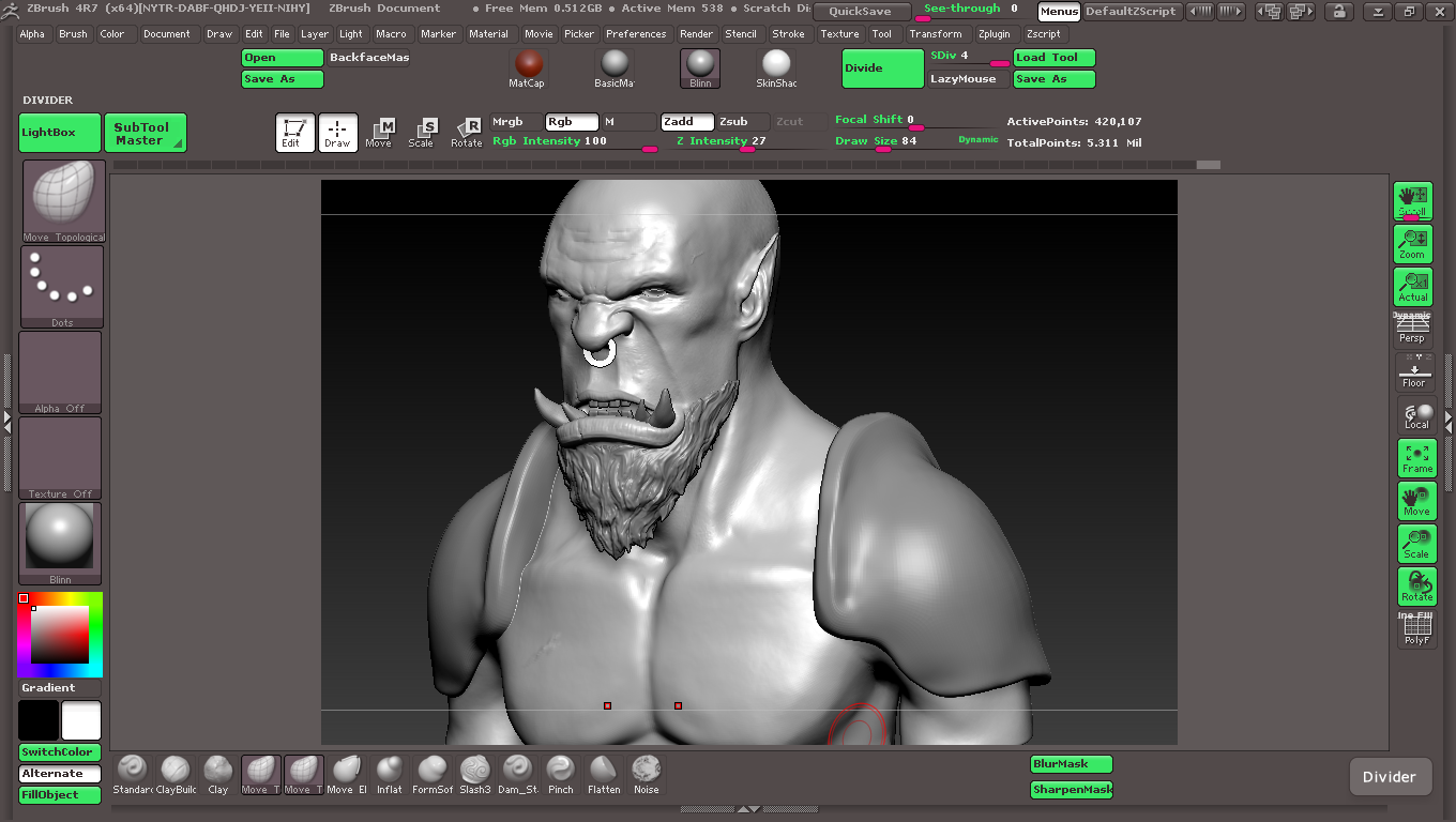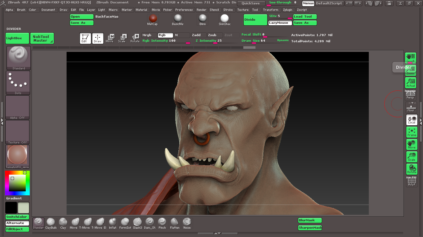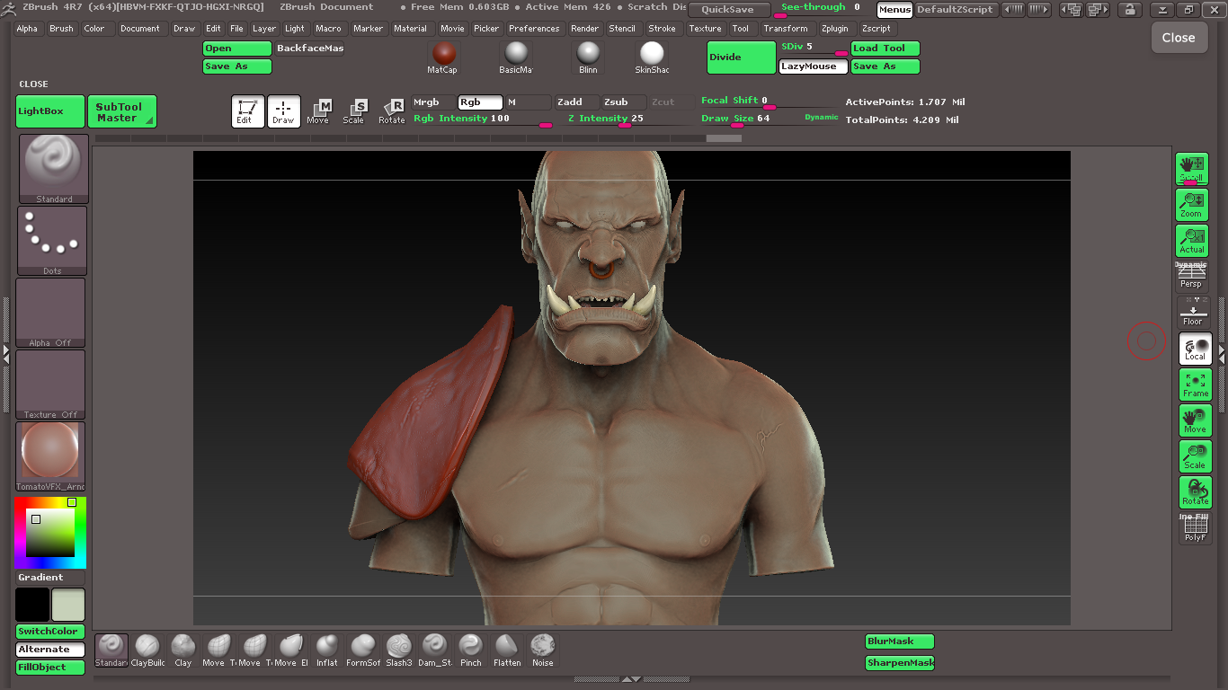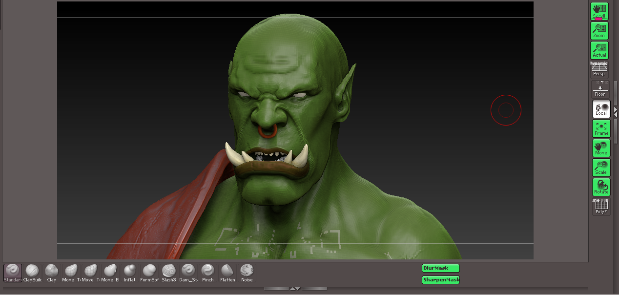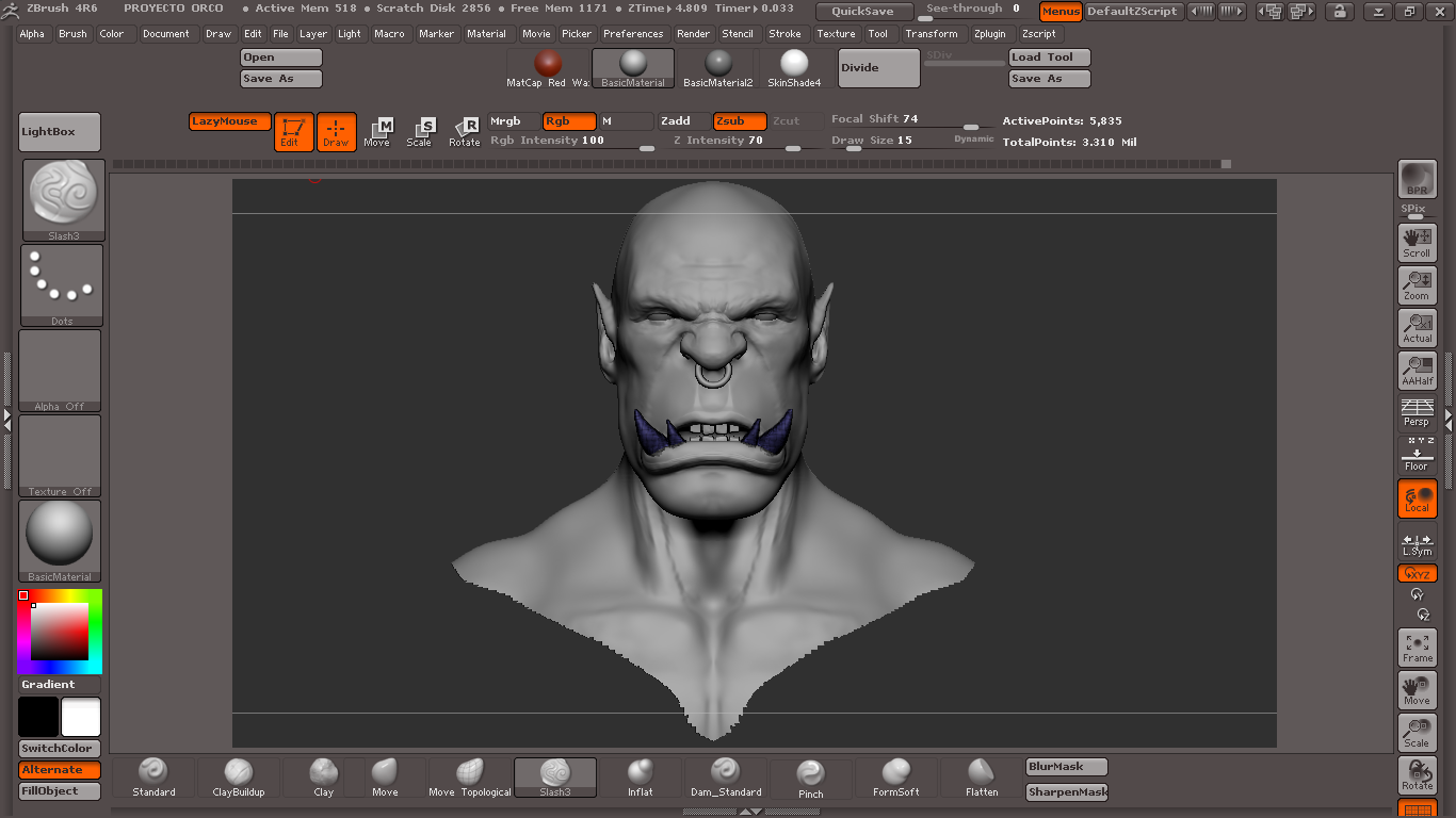 No pienso abandonar mi primer proyecto que comparto en este foro, así que, vengo a dejar el orco un poco más avanzado, nada tienen que ver ya con el modelo inicial eso demuestra lo novato que soy. Actualmente estoy trabajando tratando de cuadrar los dientes (colmillos).