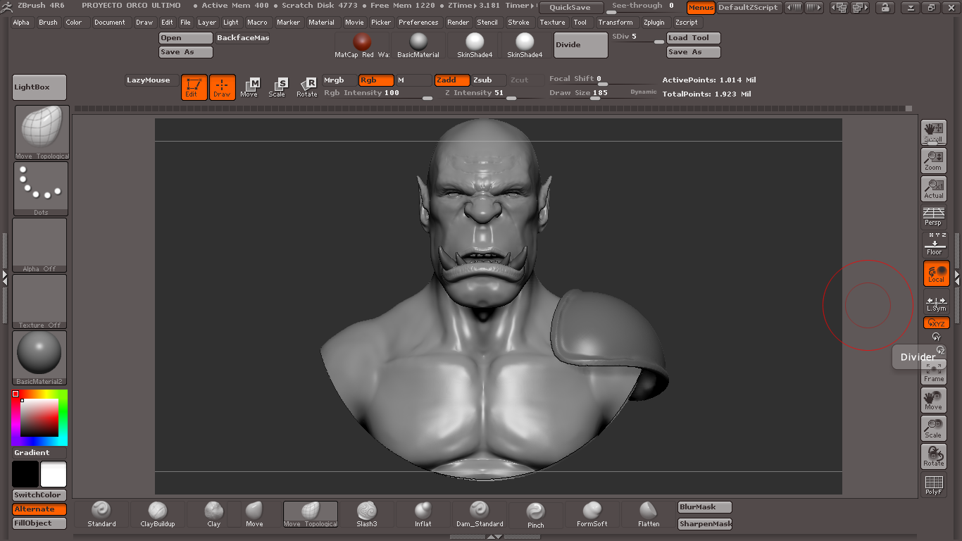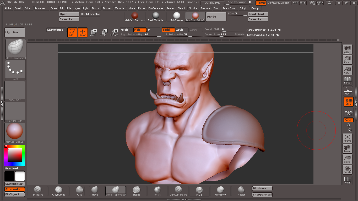 Sigo trabajando en este orco no veo la hora de poder aplicar texturas y pintarlo, estoy tratando de agregarle piezas (armaduras, collar etc) se me complica, pero viendo algún que otro tutorial la voy llevando.