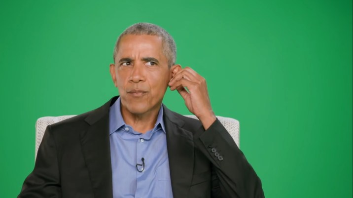 Obama habla desde un estudio en Washington DC y Oprah Winfrey desde su casa en Santa Bárbara. En el video se puede ver incluso cómo Obama elogia la tecnología al mismo tiempo que hace bromas.