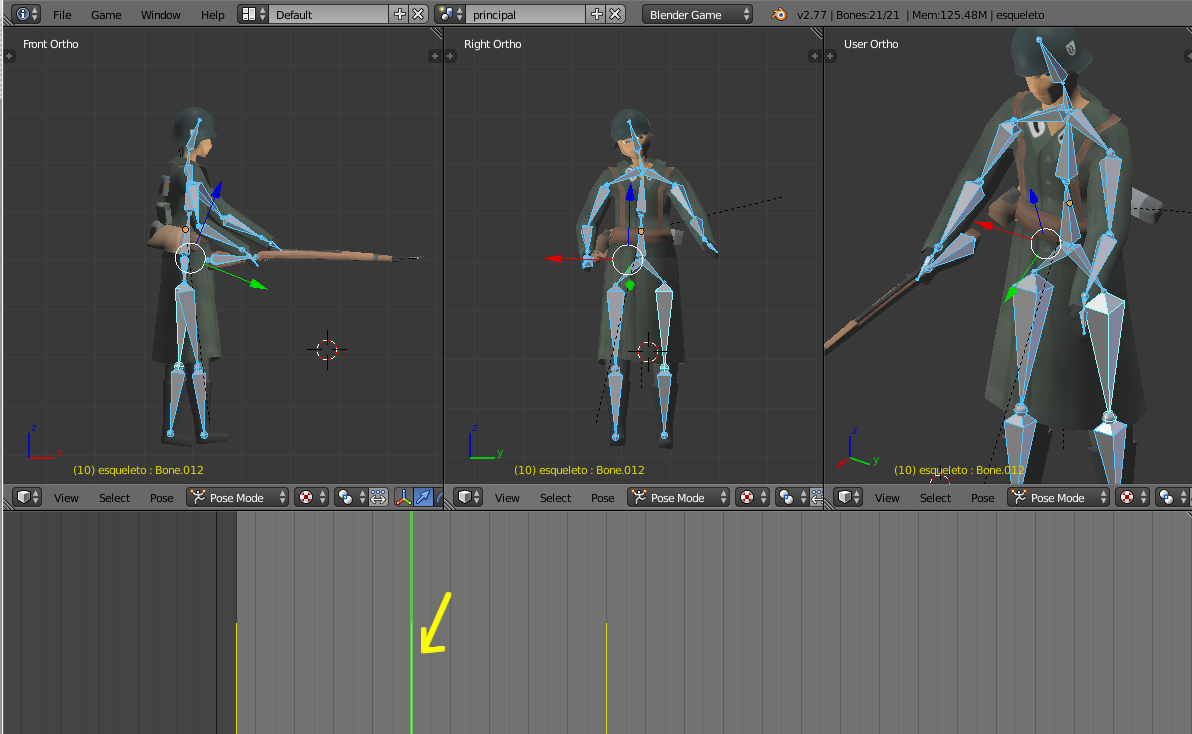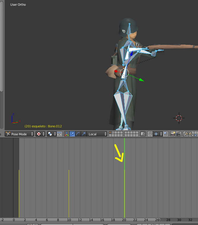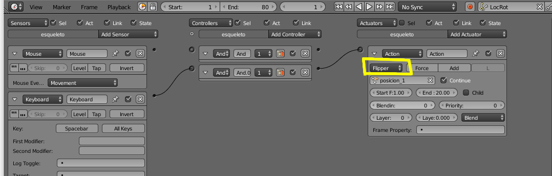 Tengo un personaje con arma y su respectivo esqueleto hecho en Blender, esta arma rota en el eje Y (el proyecto es 2D) cuando se mueve el cursor, resulta que también quiero que un hueso (brazo) se mueva junto al arma, pero solo un hueso en específico, y la verdad es que no se me ocurre nada, estoy utilizando el logic editor, dejo una imagen así me explico mejor, lo que quiero es que ese hueso siga al arma, desde ya muchas gracias.