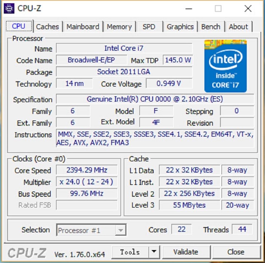 Intel xeon e5 2699 v4 es 22 núcleos,44 hilos 2.4ghzx22nucleos
