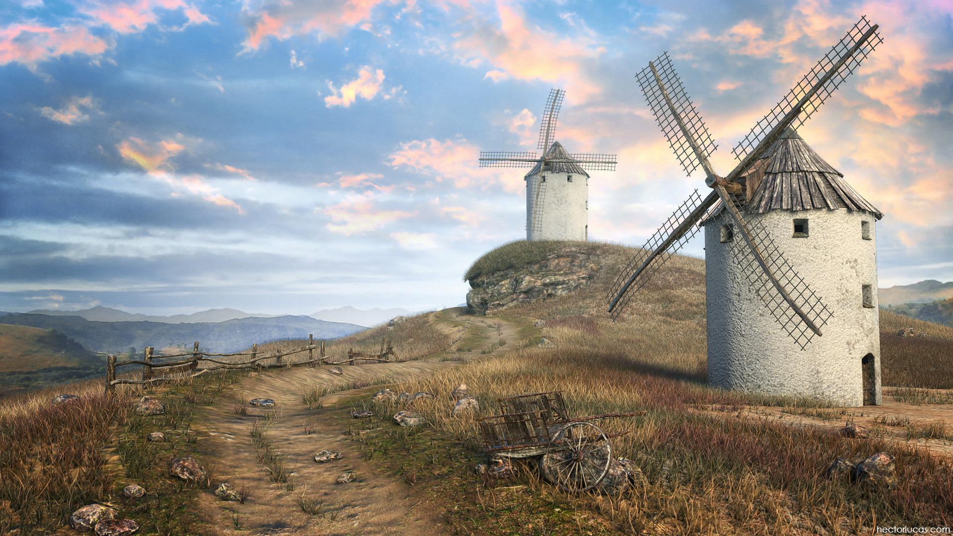 Excelente, me encanta el nivel de detalle, está pasadismo. Como única observación en lo personal noto raras las montañas del fondo, están muy contrastadas, quizas agregaría más hileras, ya que solo hay dos, y cubriría las del fondo con la niebla qué usaste.