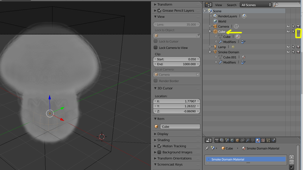 No sé qué es lo que pasa en la 2.78 pero antes cuando simulaba humo al renderizar todo iba perfecto, pero ahora sale la malla con la qué he creado el humo en la secuencia.