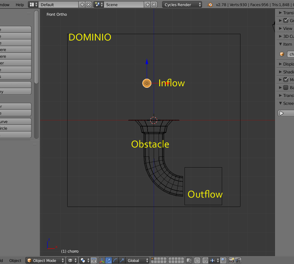 Se requiere modelar un Grifo Abierto en un lavamanos y que el Agua al caer fluya por el Desagüe.