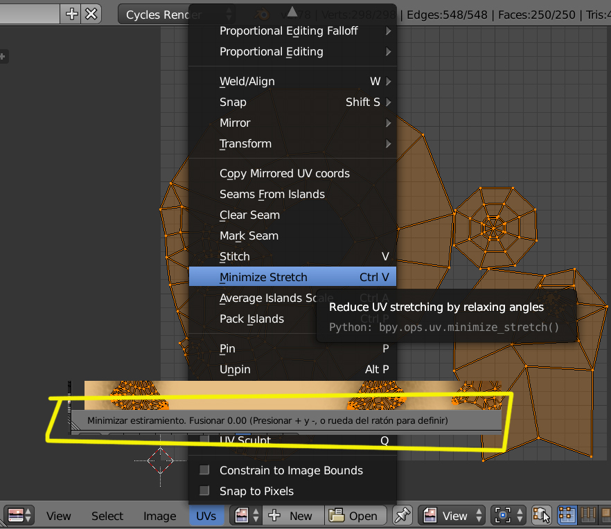 Hola, si buscas en YouTube Blender kokeshi doll, que es un tutorial para hacer una muñequita japonesa, creo que en vídeo 3 se explica cómo preparar las UV y relajar los vértices, muy bien explicado.