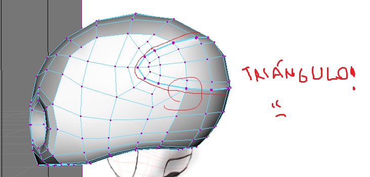 Ustedes, que son los expertos en la materia quería consultarles si resolví correctamente el tema del loop en la zona señalada, (a mi se me hace que tiene más polígonos de los necesarios) y es que se complica el asunto cuando le quiero agregar un loop (2da imagen) para él efecto hard surface. Definitivamente estoy haciendo algo mal.