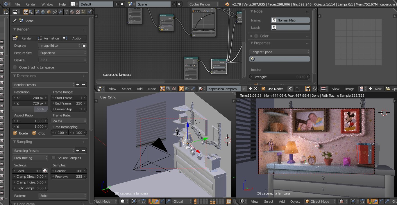 Hacia tiempo que no publicaba nada. Pues ahí va. Con 1000 samples del Cycles y 1280x720 píxeles y compuesta en el compositor de nodos de Blender. Perdonar el ruido. A ver qué se puede hacer para mejorar la imagen. Saludos.
