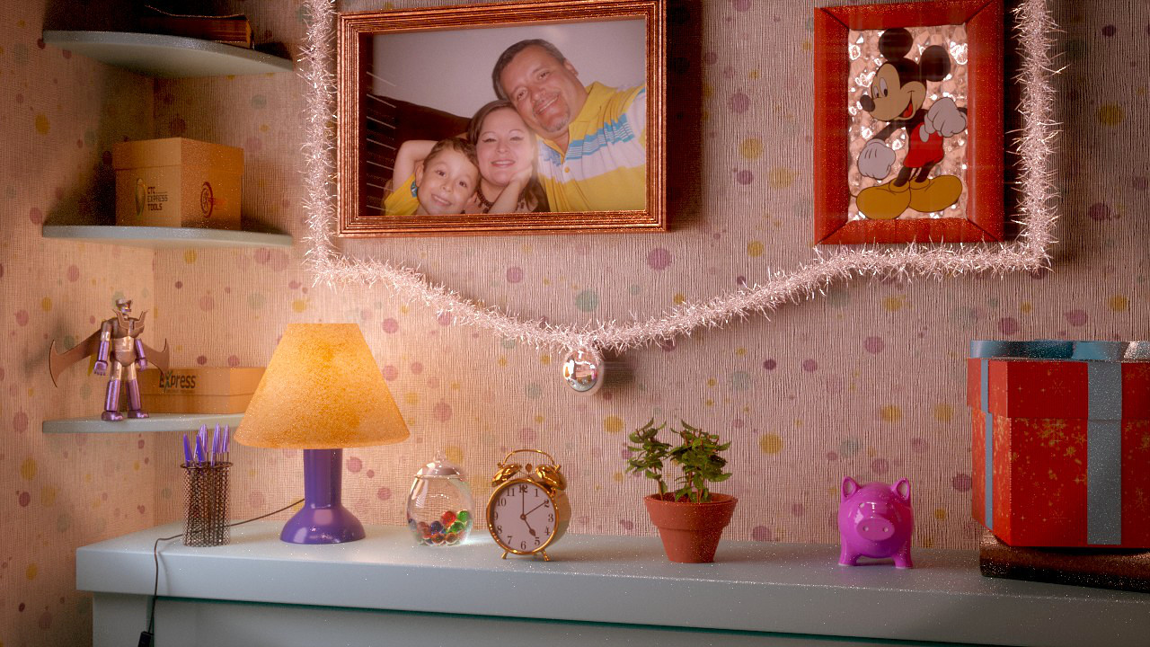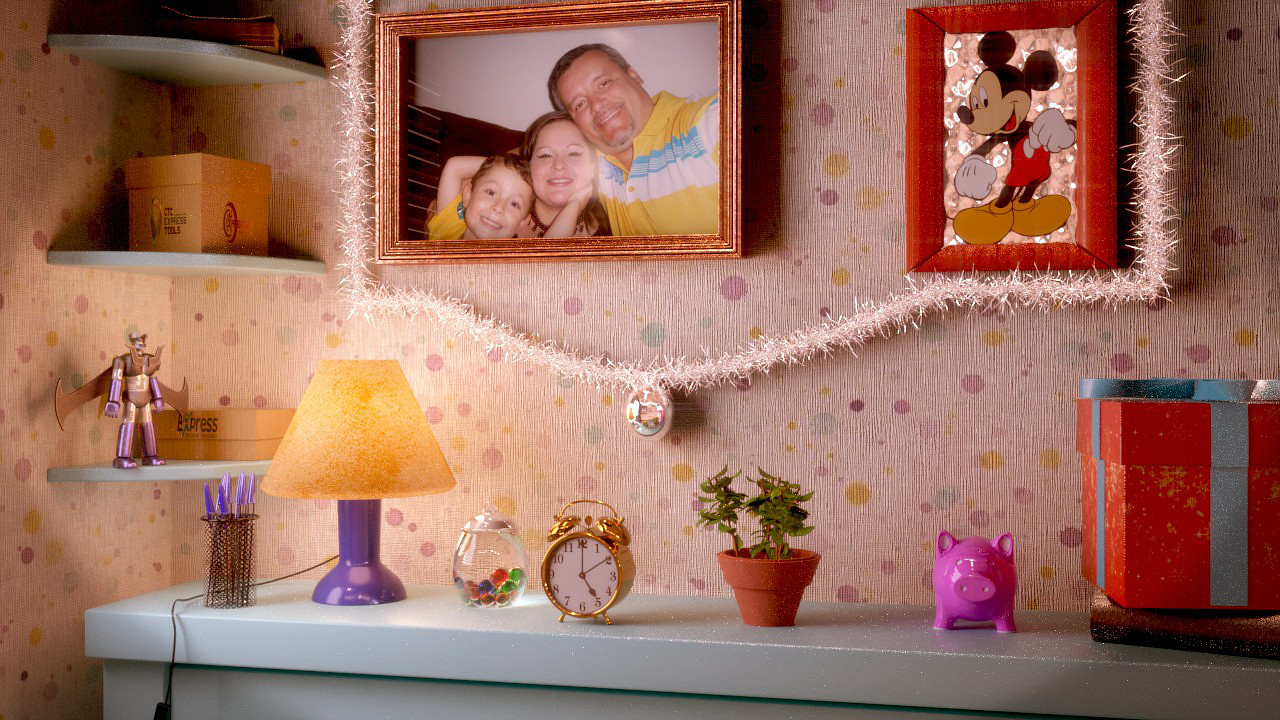 Gracias Solimán por comentar. He cambiado de tamaño la maceta, lámpara y el tarro de canicas; no sé si te referías al tamaño. El desplazamiento de la pared no obstante, lo he bajado un poco. También he cambiado la imagen del cuadro a una más apropiada: me ha dado Orlando Esquivel Arias su permiso para poner su imagen familiar. Gracias Orlando. Seguiré mejorando la escena. Saludos.