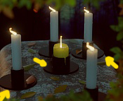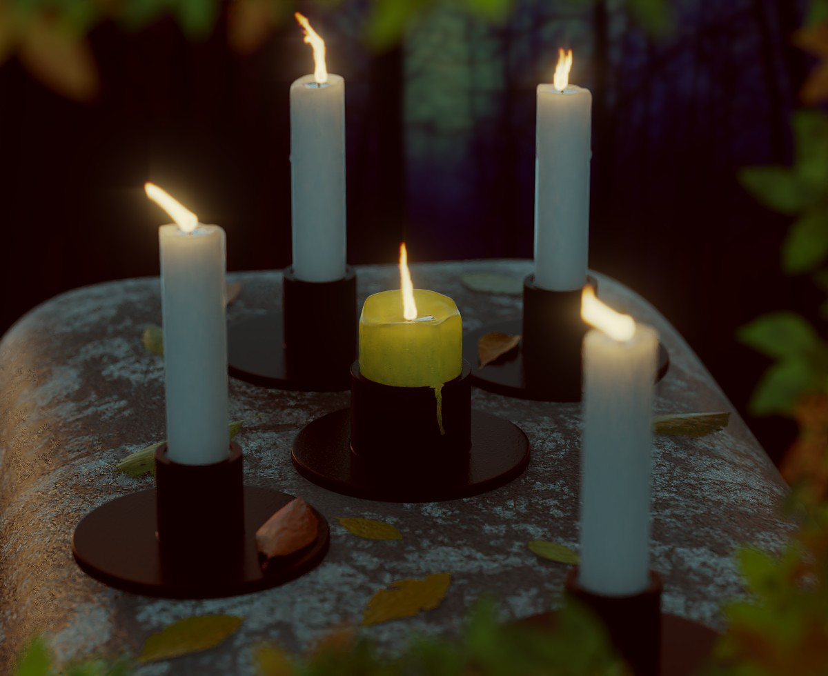 Adhiero a lo que dice arriba el compañero. Está muy bien logrado el material de las velas, pero parecen flotando y no pega el material de las bases con la composición. Saludos.