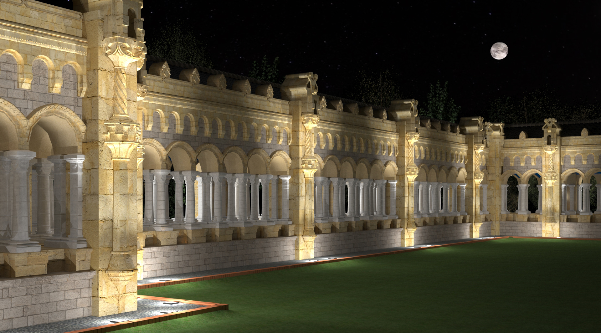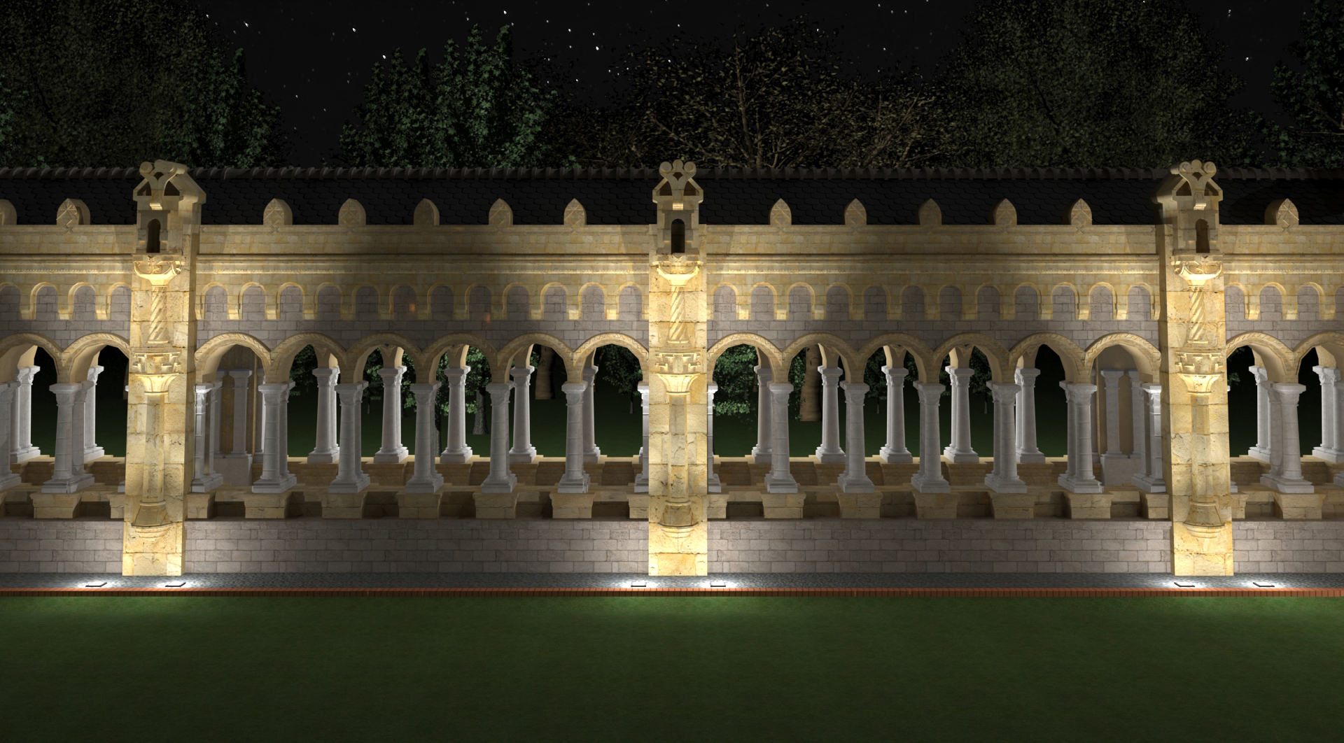 Las luces de las columnas tienen el shadow Bias un poco alto porque me salían unas sombras marcadísimas por todos los detalles de los arcos, los paños, la cornisa.