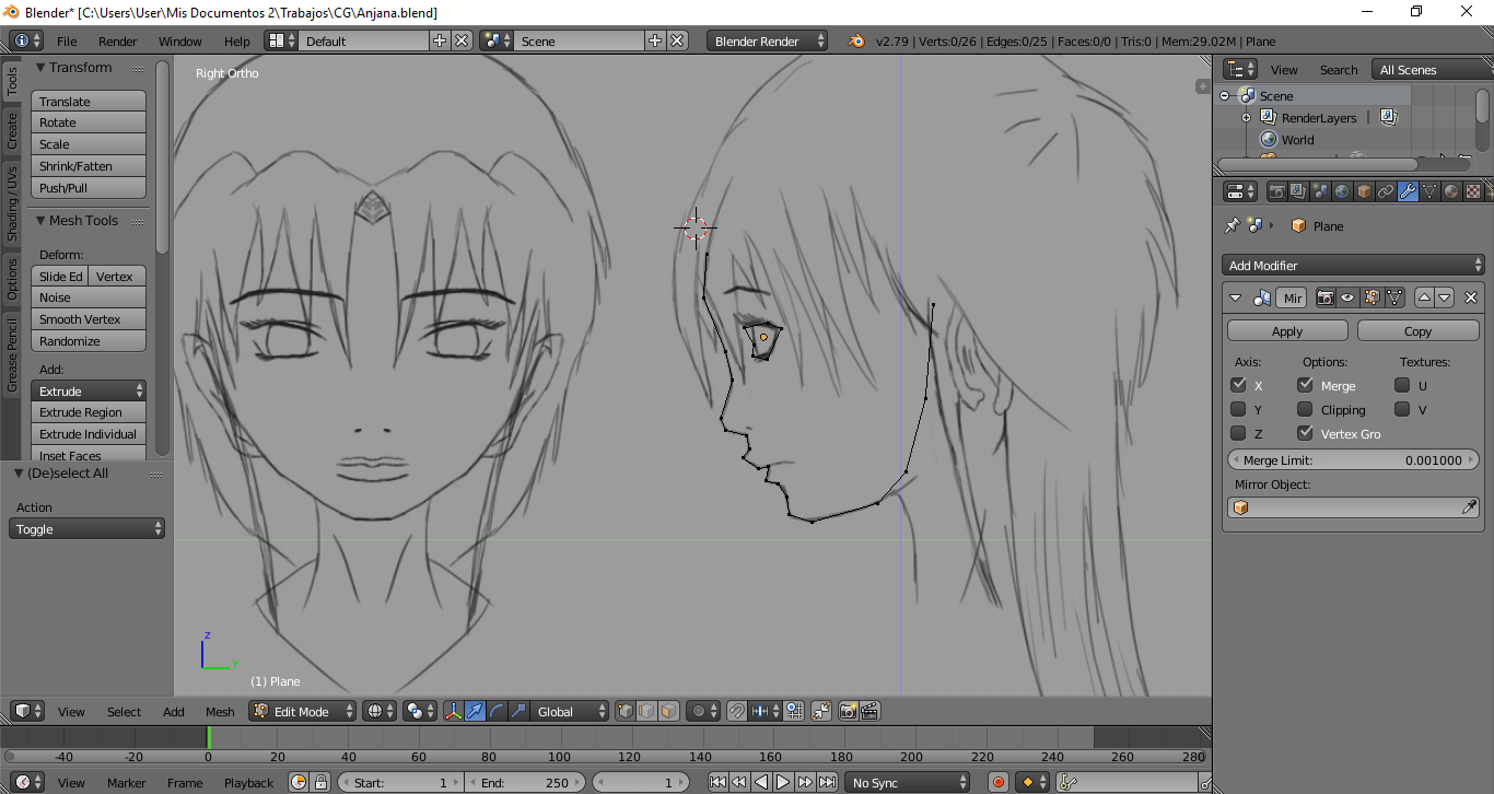 He iniciado un nuevo proyecto. Esta vez se trata de un personaje de estética manga y que pondré en un escenario que diseñaré más tarde (un bosque).