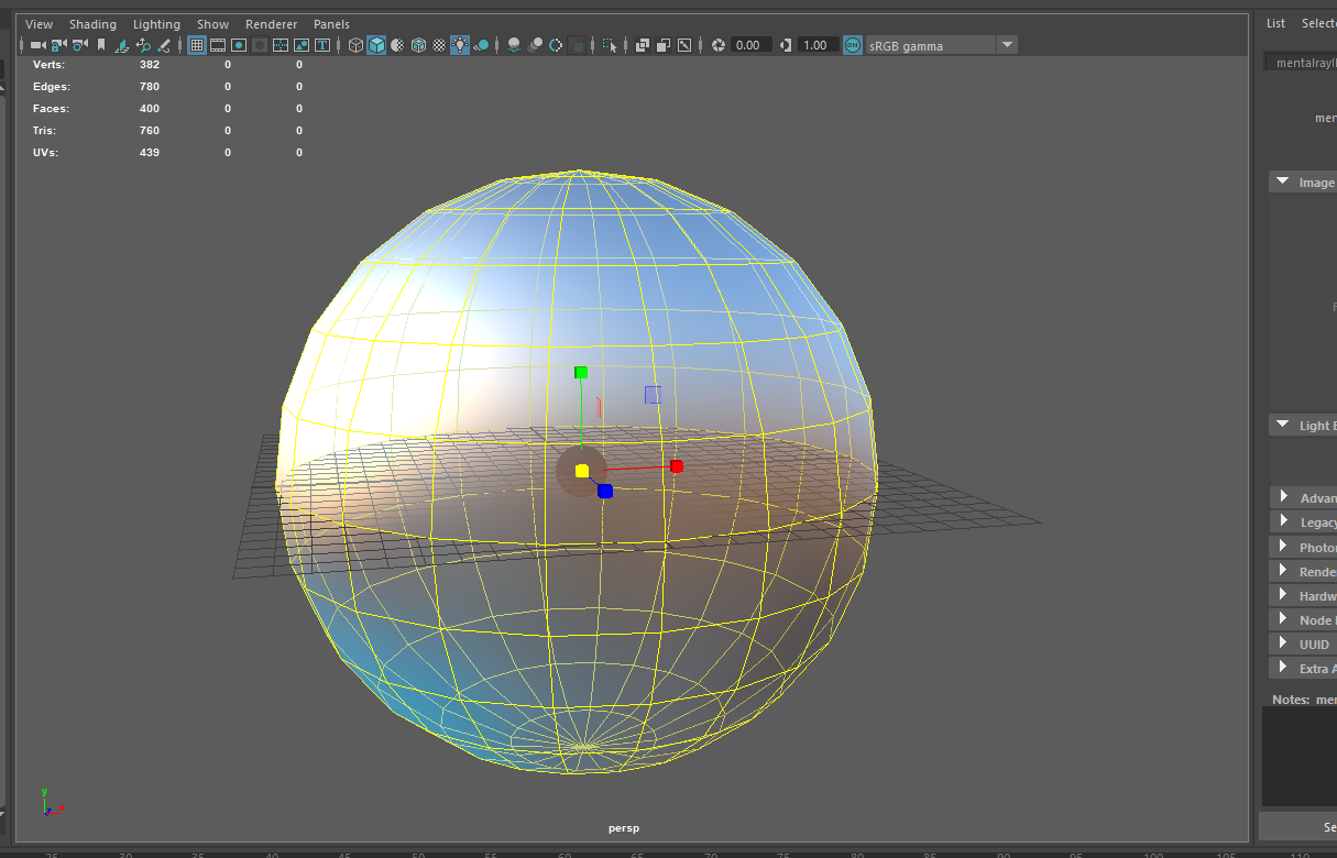 Posdata: aun que no se vea la esfera, si hago el render me ilumina la pieza el image based Lighting, adjunto a qué Maya en forma de esfera amarilla me refiero. Gracias saludos.