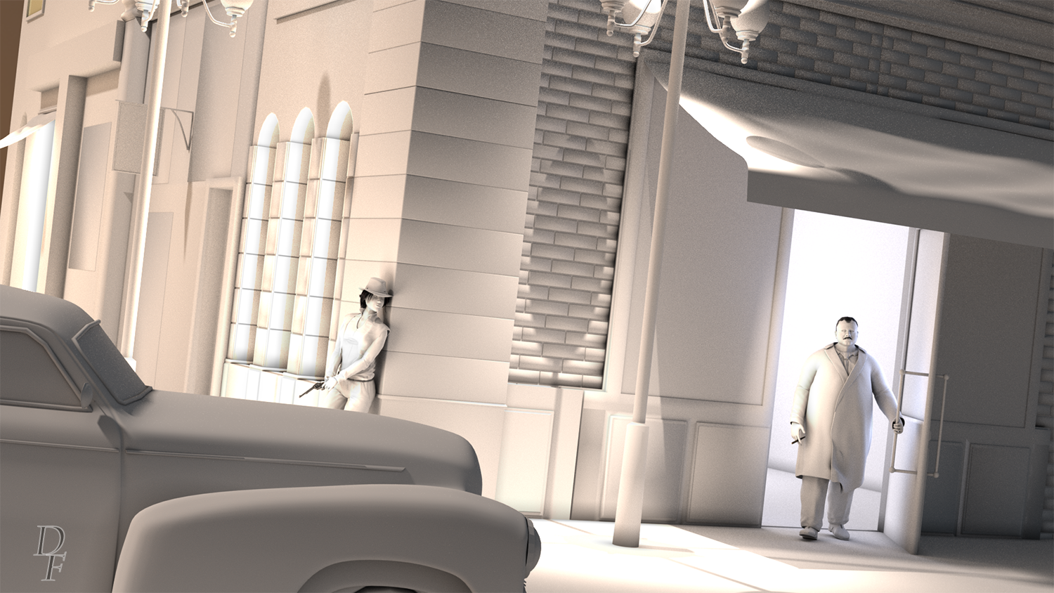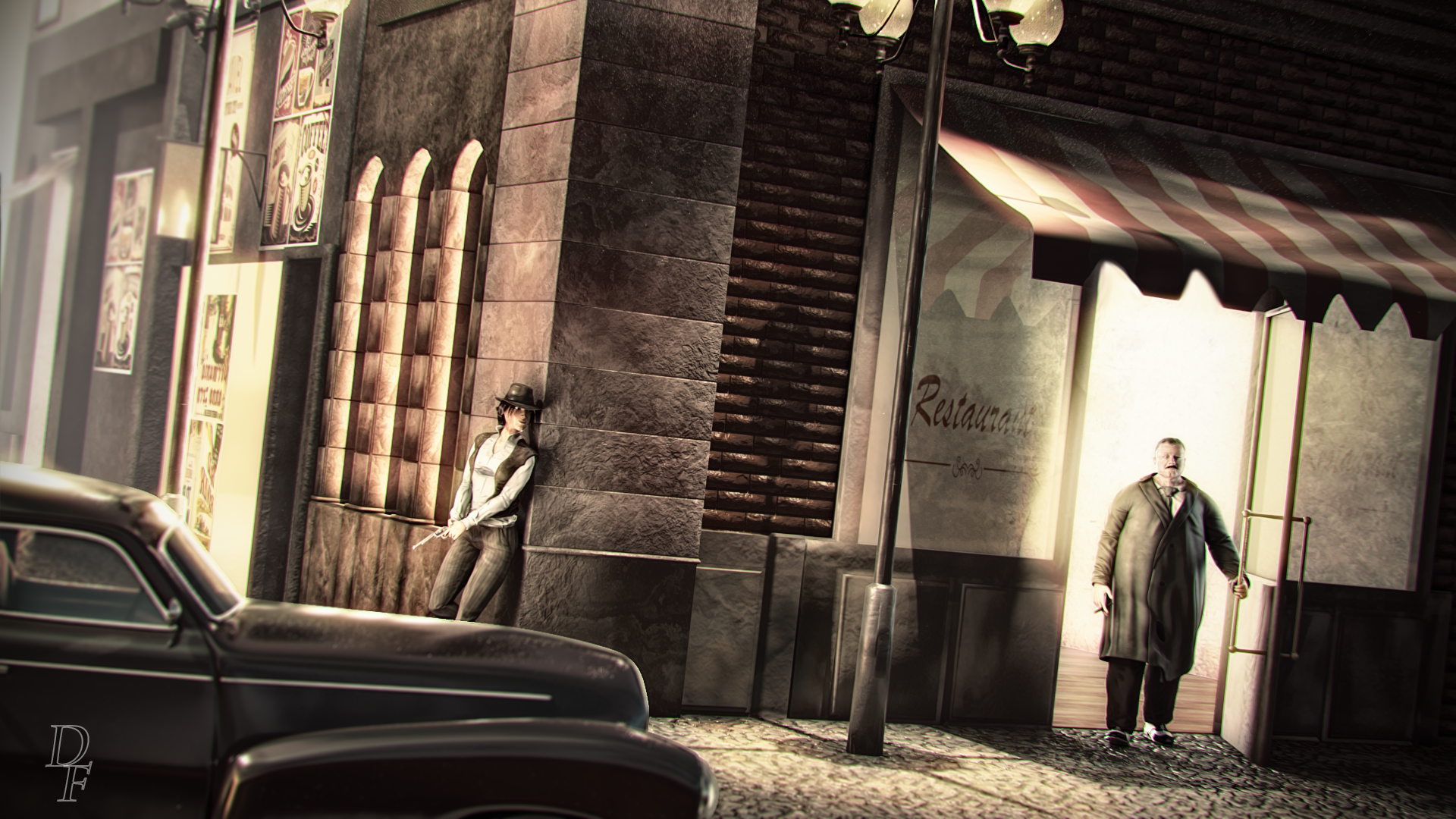 Saludos, después de un tiempo he podido terminar este trabajo de la mafia basado en los años 40, y basado en la ilustración de Olga Ciob, un gran reto pasar a 3d, pero he procurado mantener la esencia. Aprovecharé los personajes y el coche para un segundo render con otro estilo y otro planteamiento, saludos, gracias.