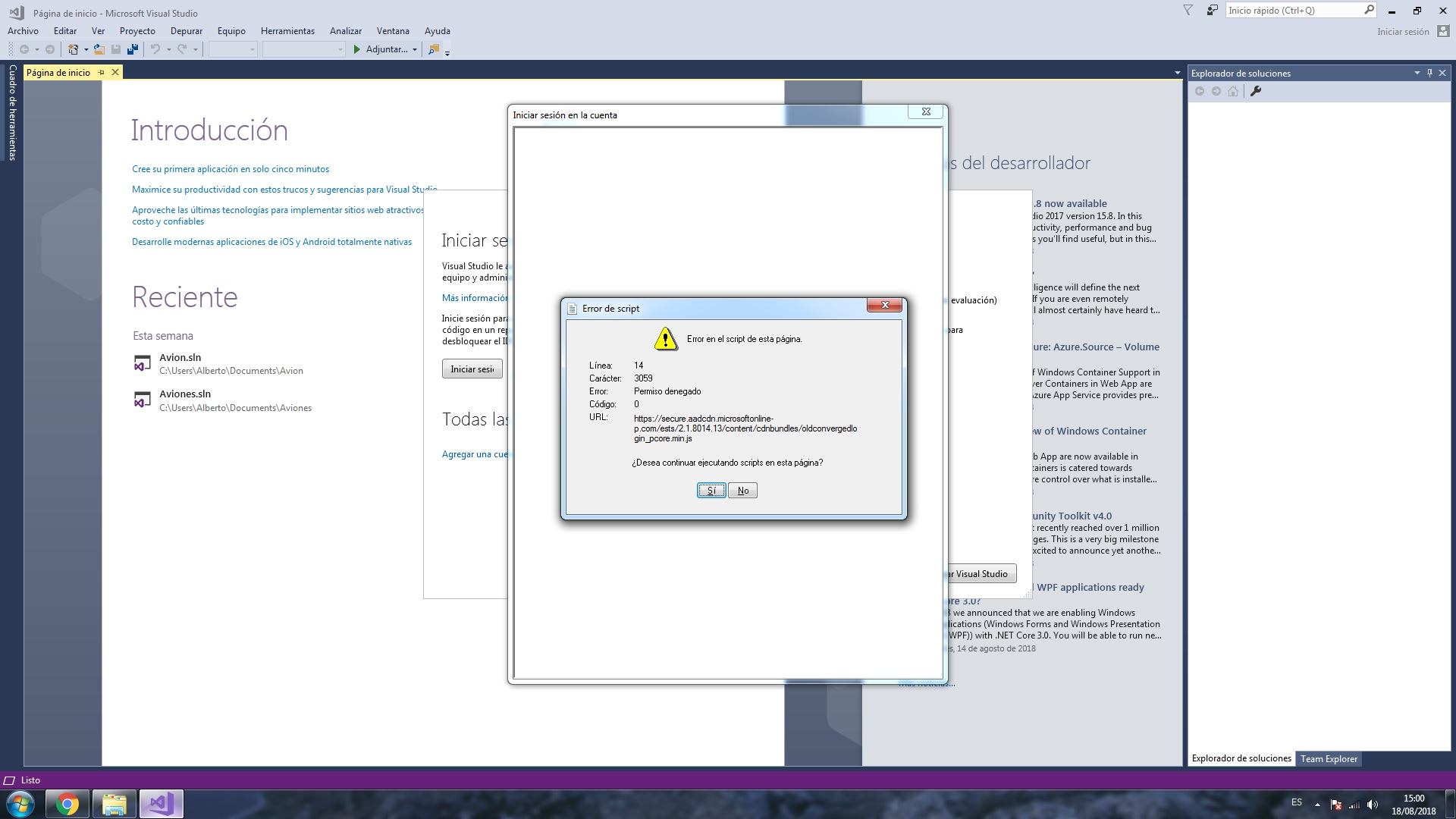 El caso es que he instalado el Visual Studio 2017 que viene con Unity y no puedo usarlo porque no para de darme este error.