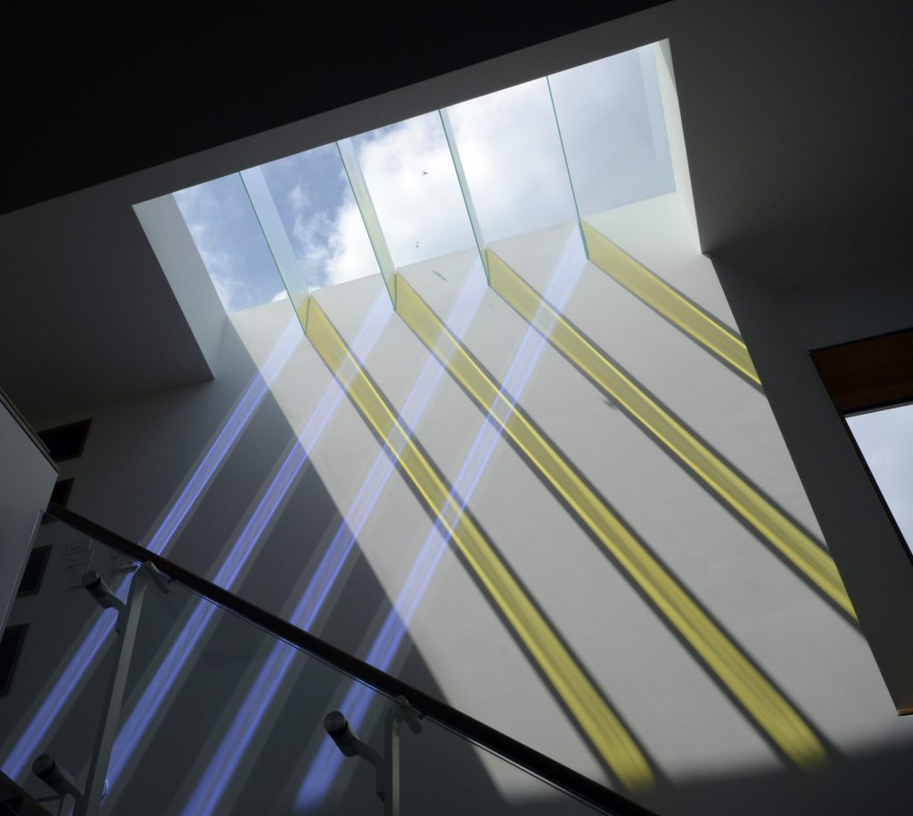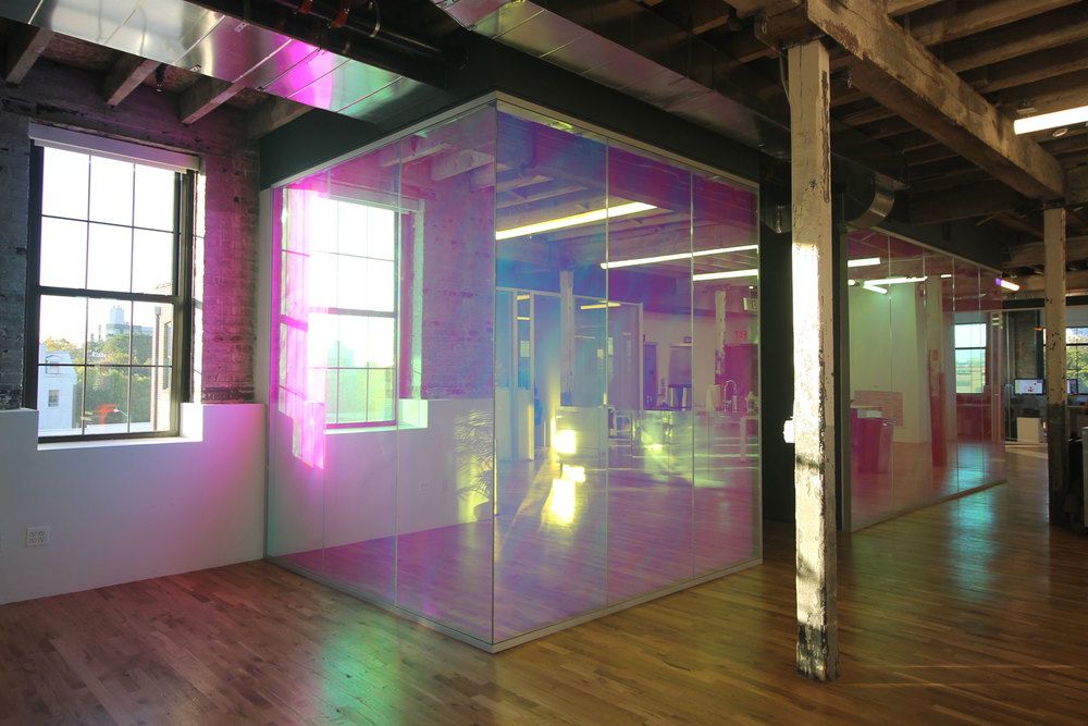 Vidrio dicroico sombras de un color y reflejos de otro color