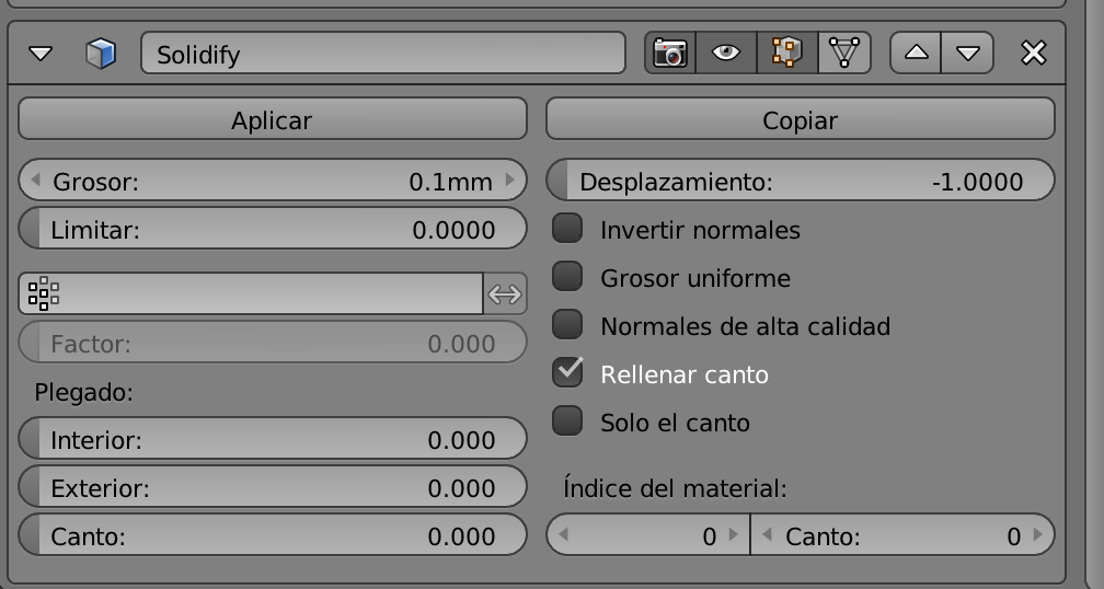 2.- Cuando doy el modificador solidificar, el grosor que le doy es realmente en milímetros, y el desplazamiento hacia afuera ¿es también en milímetros?