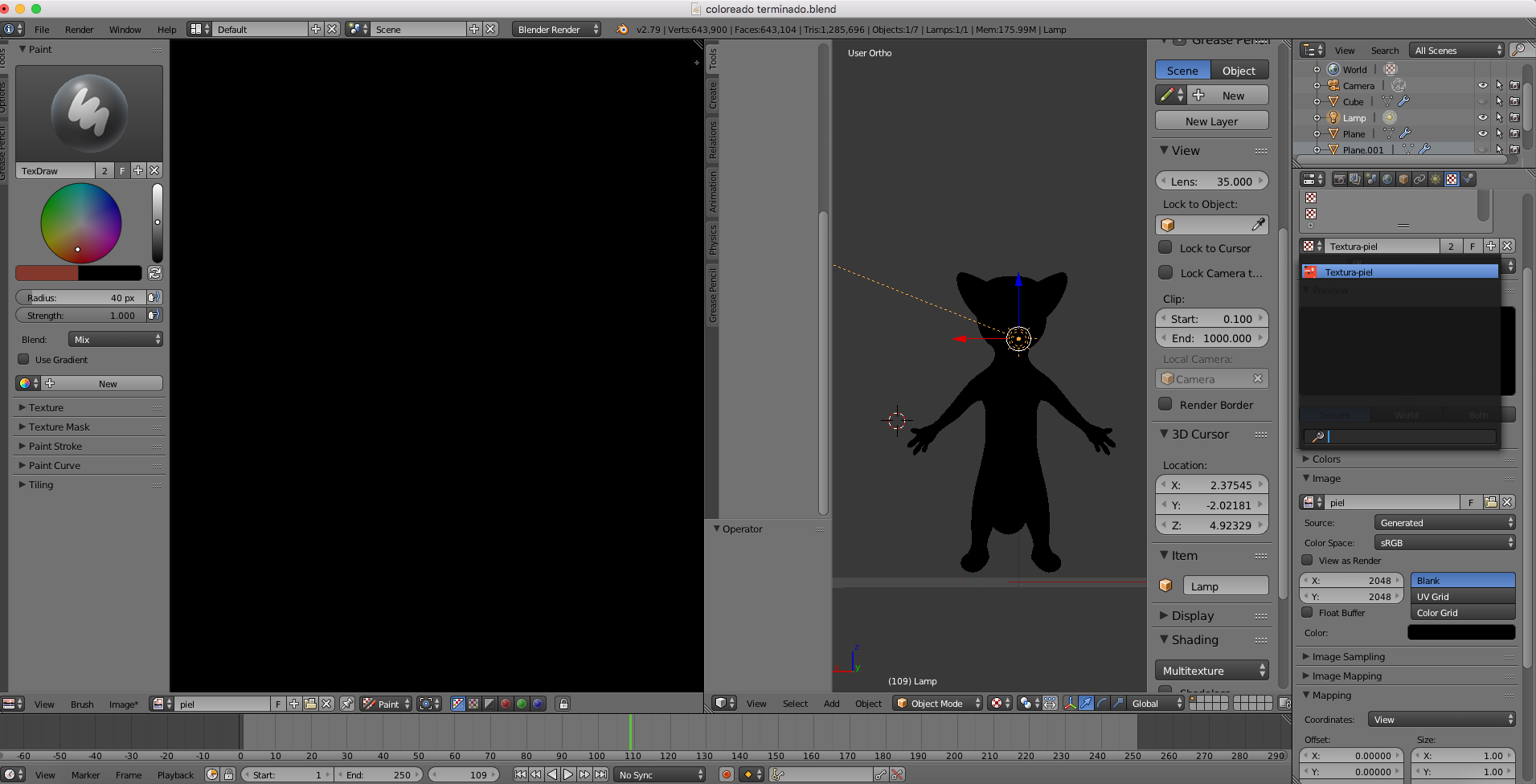 He estado trabajando en un pequeño en Blender para ir aprendiendo un poco, hice un zorro el cual ya tiene la topología correcta, hice los uwnraps y ya tiene lo había texturizado, entonces guarde el archivo e intente ponerle pelo y el nuevo avance lo guarde en un nuevo archivo. Entonces en ninguno de los dos archivos que trabaje aparece la textura negra, pero en la previsualizacion aparece lo que le había colocado. Les dejo capturas de pantalla para ver si me pueden ayudar por favor.