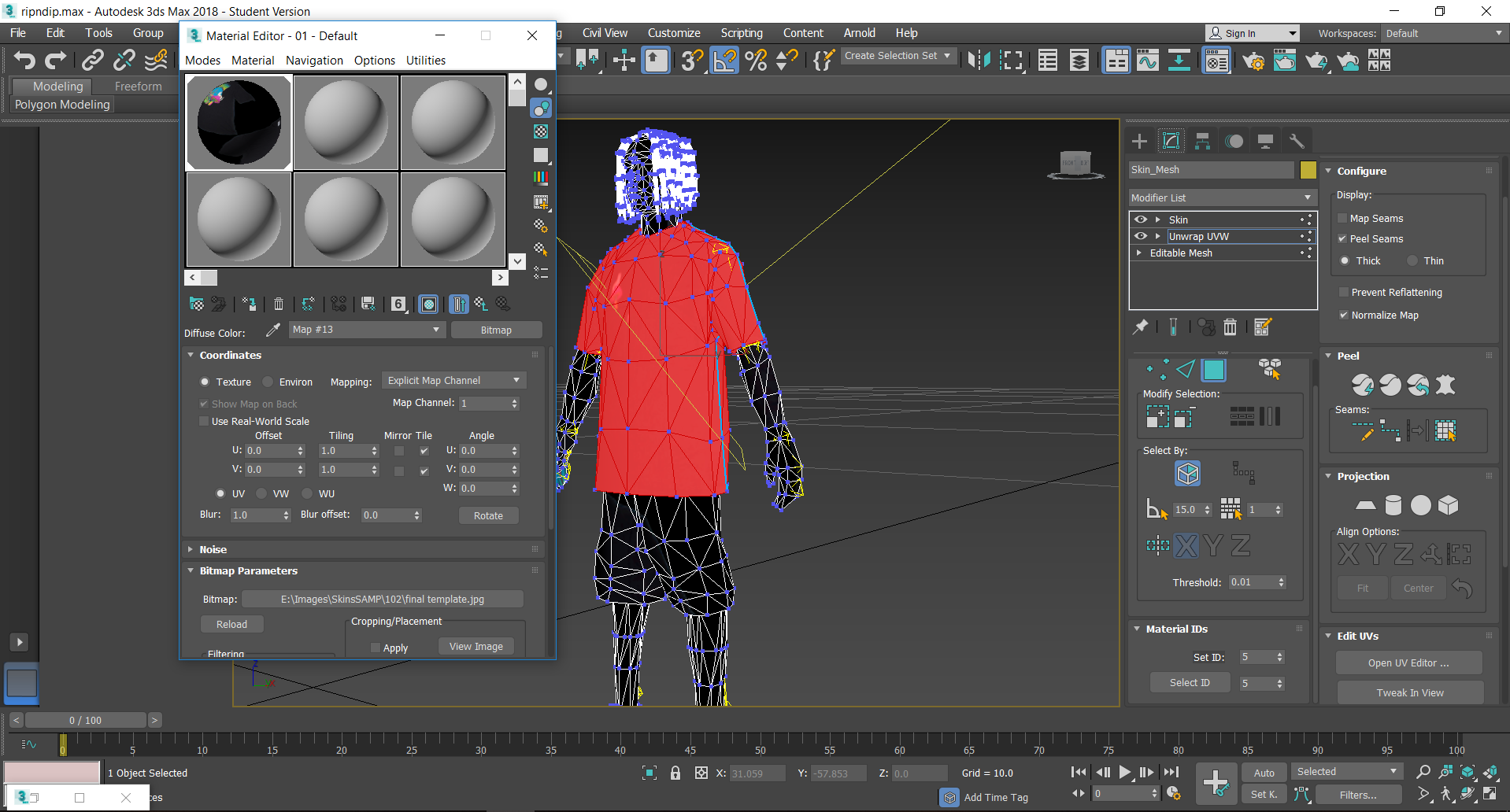 Hola, quize ponerle una textura a un polo, lo seleccione luego le puse el material, pero lo que pasa es que la textura se pone en todo el modelo, cómo puedo solucionar eso -- IMÁGENES ADJUNTAS --