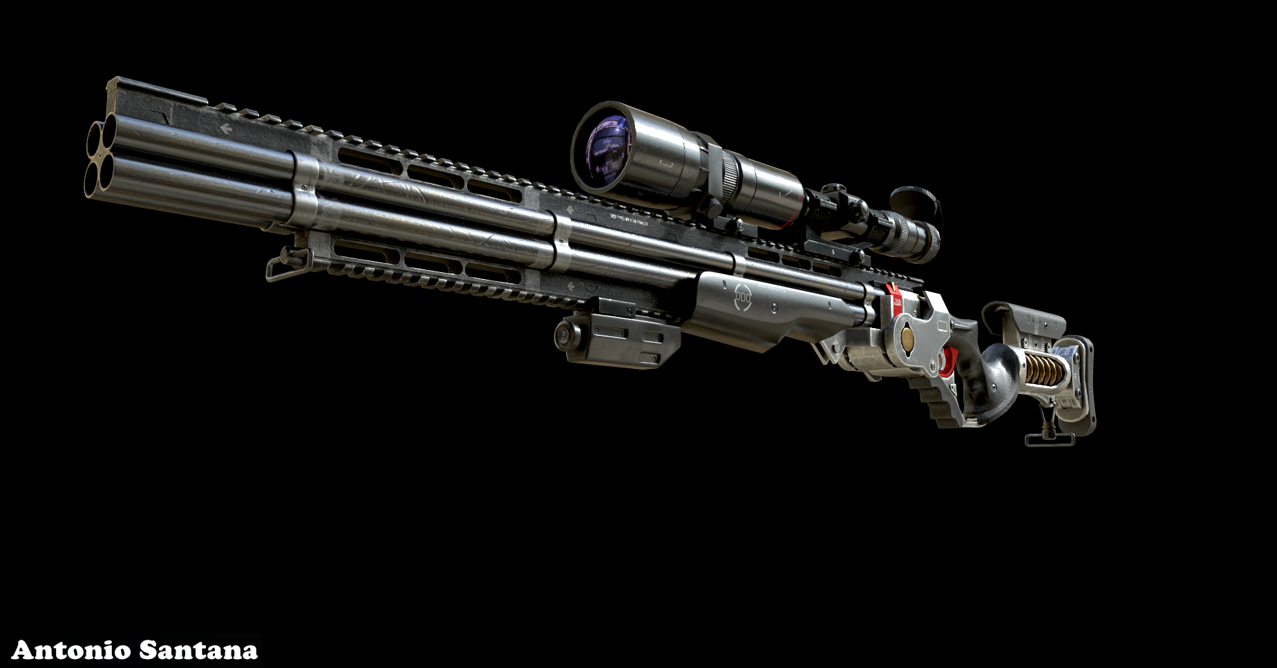 Buenas, les dejo unos renders de un rifle modelado en Blender y texturizado y renderizado en SP. El diseño es de Kris Thaler https://www.artstation.com/artwork/B1Zxz se admiten consejos, espero les guste.