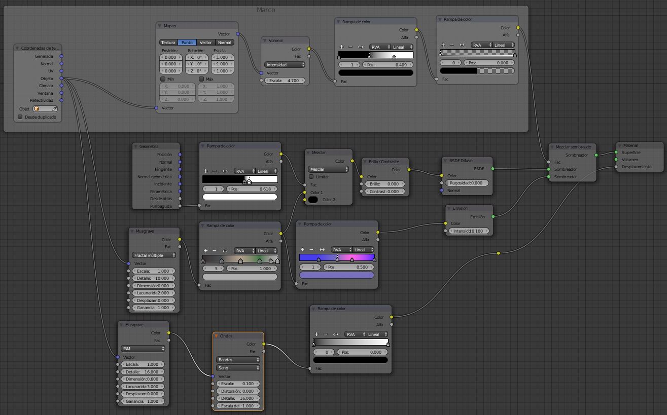 Posdata: También me interesarían referencias sobre cómo mejorar la iluminación para no tener que recurrir a trucos como jugar con la exposición o opiniones sobre cómo mejorar cualquier cosa en general, llevo solo unos meses con Blender y a pesar de que la cantidad de documetación sobre el programa es espectacular hecho en falta un buen compendio general sobre las herramientas básicas de cara a la gestión de un largometráje. Soy estudiante de Bellas Artes y estoy fáscinado por la versatilidad del programa, pero me falta orientación. También me interesa documentación sobre cómo crear mis propios patrones procedurales y si estos se podrían aplicar en Blender. Use un poco de C# aplicado en Unity y mire por mi cuenta nada de Java aparte de eso programación no sé, por lo que si es necesaria para esto de hacer mis propias texturas agradecería un buen curso o documentación orientado/a hacia las aplicaciones propuestas, obviamente si no existe pues nada ya me las apañare, gracias de antemano que ya es mucho pedir.