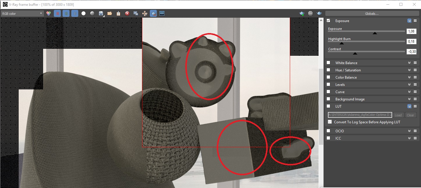 En la fotografía podéis ver de entre el batiburrillo de objetos, los que tienen mal la textura marcados en rojo, (deberían compartir la textura de tela de los elementos de al lado).