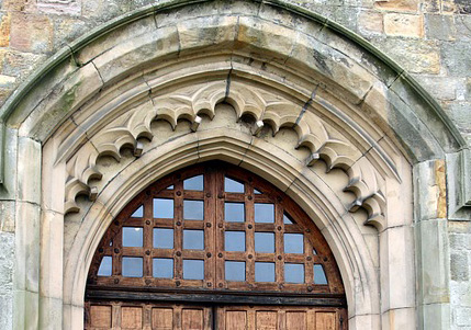 EStoy intentando crear un adorno (ignoro el término apropiado) de una puerta de piedra que consiste, básicamente, en una plancha que tiene una serie de curvas que están biseladas (adjunto la fotografía correspondiente para que se me entienda mejor), pero no he sido capaz de encontrar un modo apropiado de hacerlo. He probado a realizar recortes mediante el modificador boolean con un cilindro para luego biselarlo, pero no me ha dado resultado adecuado. Se bisela, pero la malla es un tanto caótica. ¿Alguien puede aconsejarme sobre cómo debería proceder? Gracias