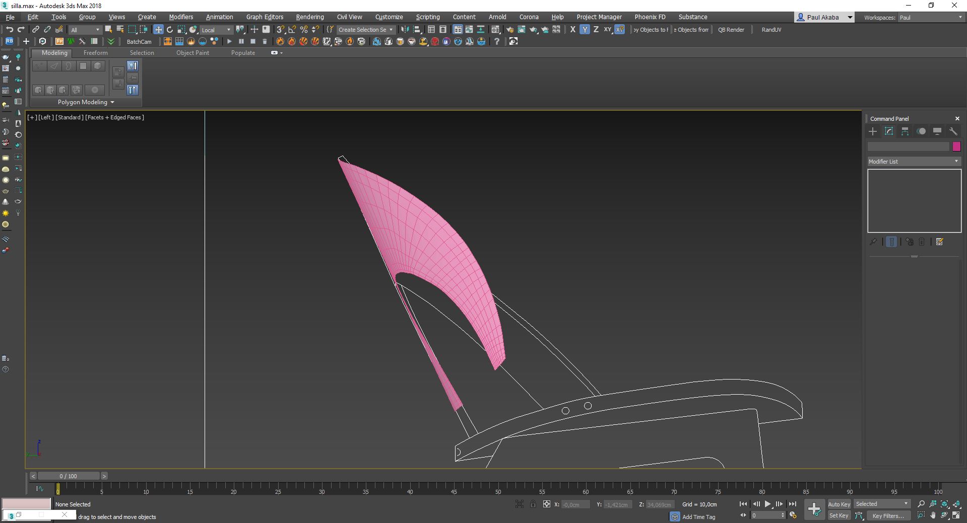 El respaldo tiene una curvatura desde su eje central y además está inclinado. He intentado con un bend cuadrar esa curvatura con los planos, usando FFD box pero no hay manera. Seguro que se me está escapando algo.