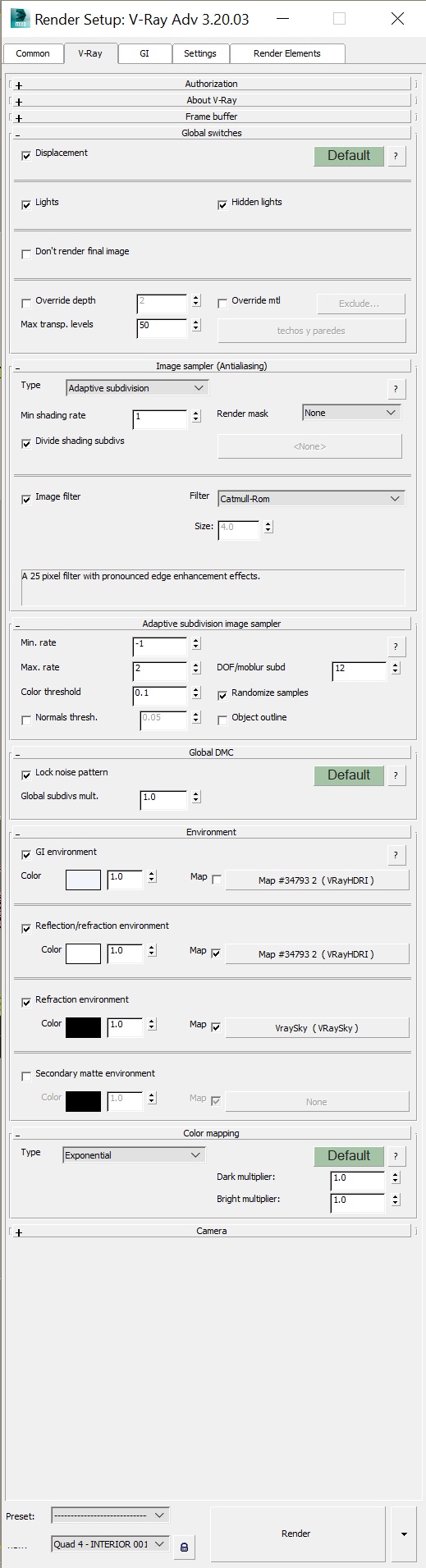 El caso es que no se me dan bien los interiores. Veo trabajos realizados por otra gente y se me cae la baba. Veo mis resultados y me deprimo. No sé si s¡es que no doy bien con la tecla de la iluminación, o son los parámetros de render que utilizo. Para muestra un botón. Aquí os dejo un interior para que lo evaluéis. Podéis ver en el techo de la cocina cómo se producen manchas y no es homogéneo, así como la carpintería de la cocina en sí (lacado blanco) da una sensación de suciedad, el sofá, mientras que en la parte iluminada la tela se ve bien, en la que está en sombra sufre como una aberración. No sé, me gustaría que le echarais un vistazo a ver si me dais algún consejo que me permita mejorar mis interiores. Un saludo.
