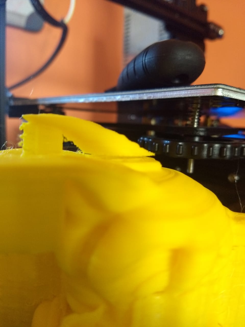 Tengo una consulta sobre la Ender 3. Intente imprimir una pieza y una de las capas la hizo separada en toda la pieza, es la segunda vez que me pasa. [Adjunto Imagen].