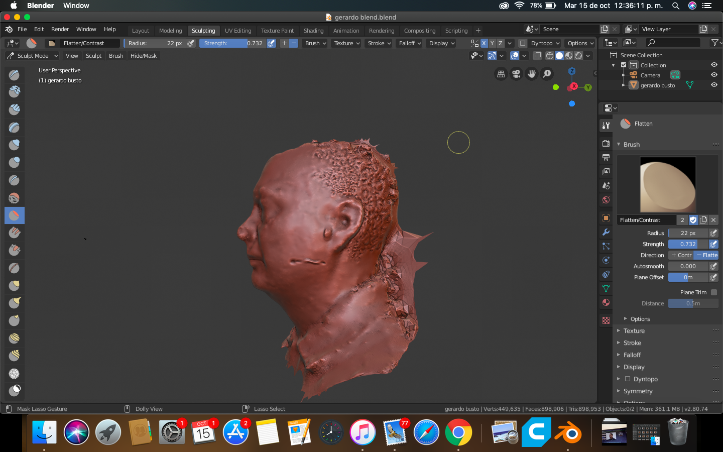 No estoy seguro de porque pasa, escanee a alguien y utilicé meshroom para hacer el modelo, de ahí empecé a trabajarlo en modo escultura para detallarlo bien, la cosa es que cuando estaba haciendo la comisura de los labios y parte de la nariz me di cuenta que se veía reflejado sobre uno de los cachetes, ¿alguien sabe como puedo quitar eso? o ¿cómo puedo solucionarlo para que ya no pase? no tengo activada ninguna función de mirror por eso me saca de onda, estoy usando Blender 2.8