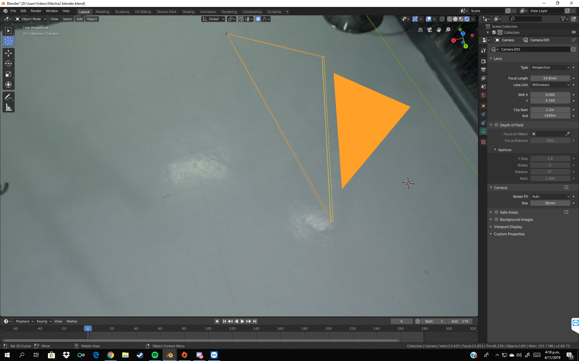 Buenas tardes, Tengo un problema con la cámara de Blender 2.8, puesto que esta se quedo plana y no se como restaurarla a como debería ser y no puedo renderizar puesto que solo enfoca una linea recta.