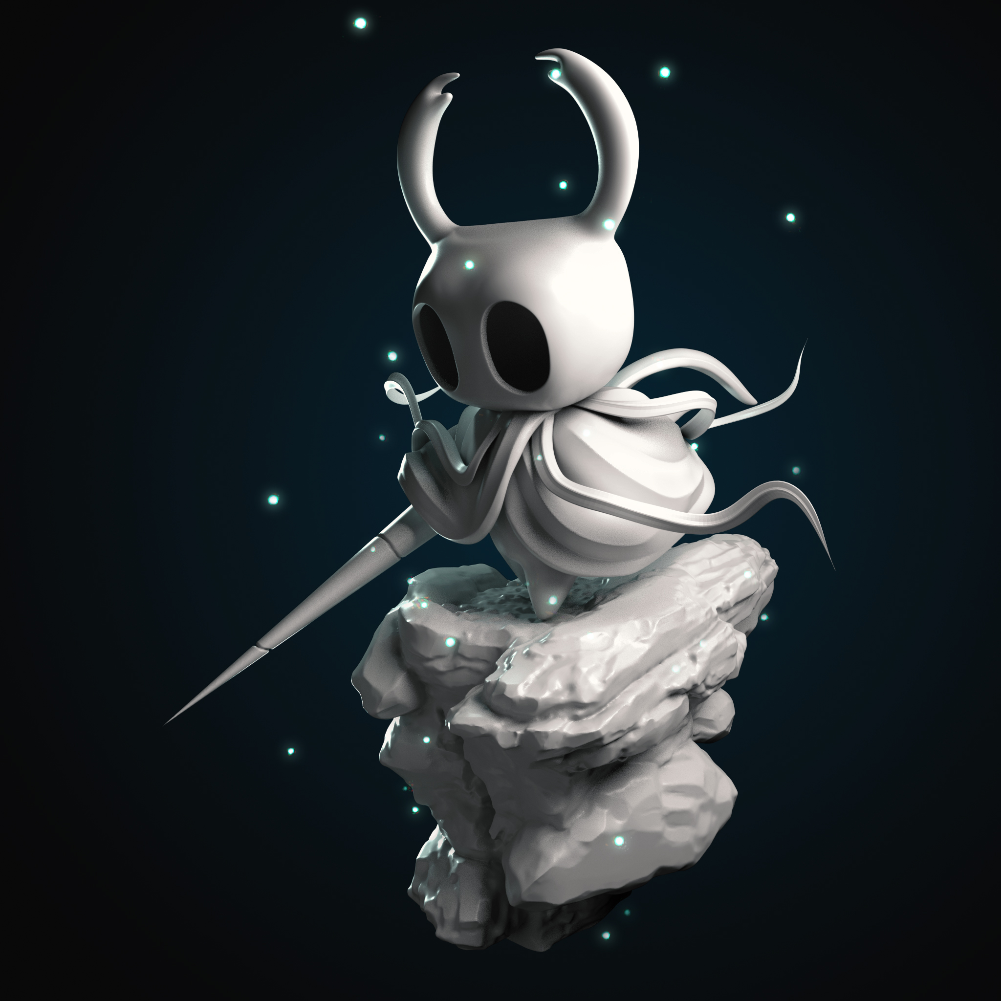 The Knight es el protagonista del videojuego Hollow Knight y según lo vi decidí hacerlo en 3D. Poco más tarde obtuve una impresora 3D y como a mis amigos les encantaba la figura imprimí para darselas.