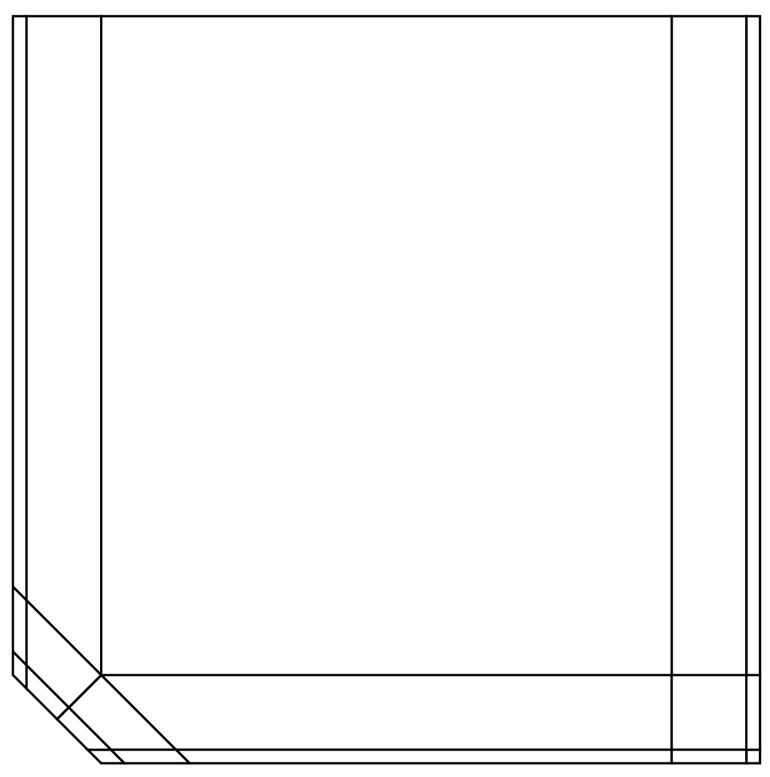 Como no se me ocurría otra forma de modelar el chaflán le dibuje previamente, importe la referencia y con Knife fui haciendo los cortes sobre un plano y eleve la extrusión. Ahora los loops del perímetro del pallet no los puedo seleccionar de continuo.