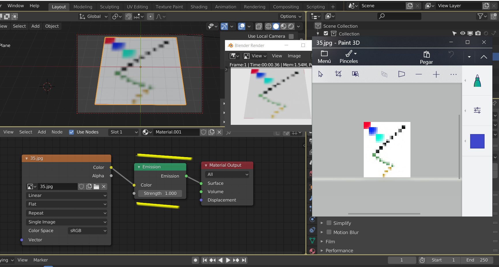 Quisiera hacer un juego que tiene una resolución de 320x200 y los sprites tienen que ser muy pequeños, 27x32 o 52x60, pero Blender al rederizar lo emborrona de mala manera.