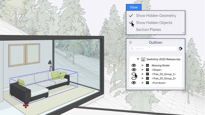 Actualización de la actualización de Sketchup, aparece sin previo aviso una versión 2020.1 que viene a corregir algunos fallos y añade nuevas funciones, ahora los objetos se pueden editar incluso estando en modo oculto para la escena, y puedes guardar el estado de visibilidad del objeto y el plano de sección junto a la propia escena.