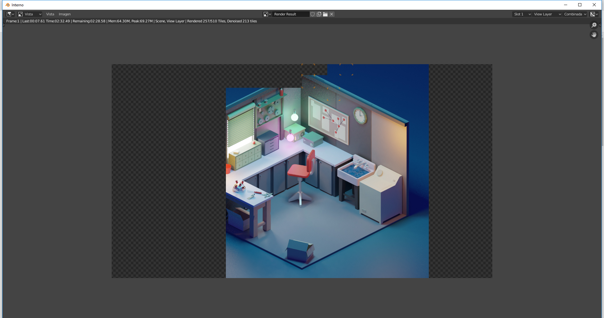 Estoy siguiendo un tutorial de YouTube y genial todo pero a la hora de procesar la imagen. no tengo ni idea de que puede pasar. como os digo llevo con el programa muy poco tiempo, por el momento solo usaba 3dmax y vray