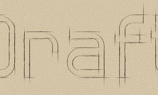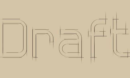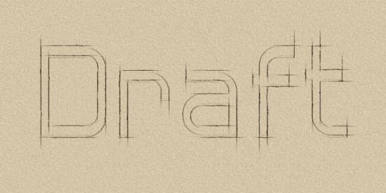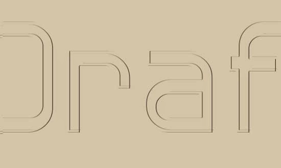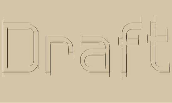 Selecciona la Herramienta de texto y escribe la palabra Draft. Utiliza la fuente descargada Hall Fetica con un color Negro y un tamaño de 350 px.